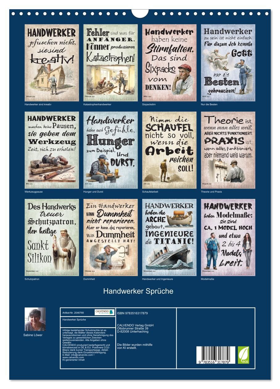 Handwerker Sprüche (Wandkalender 2026 DIN A3 hoch), CALVENDO Monatskalender