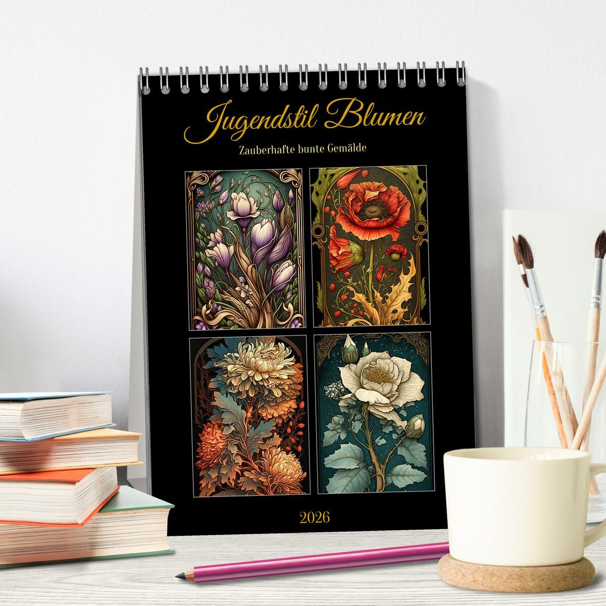 Jugendstil Blumen (Tischkalender 2026 DIN A5 hoch), CALVENDO Monatskalender