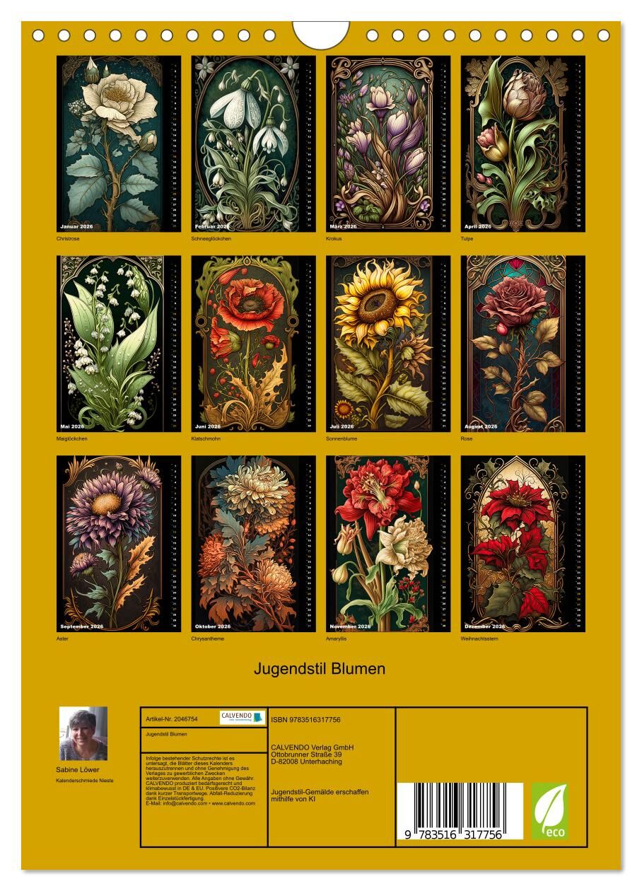 Jugendstil Blumen (Wandkalender 2026 DIN A4 hoch), CALVENDO Monatskalender