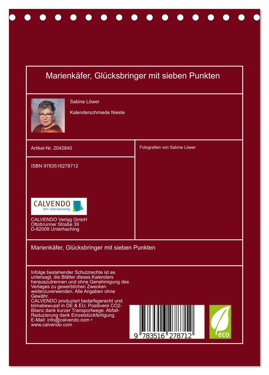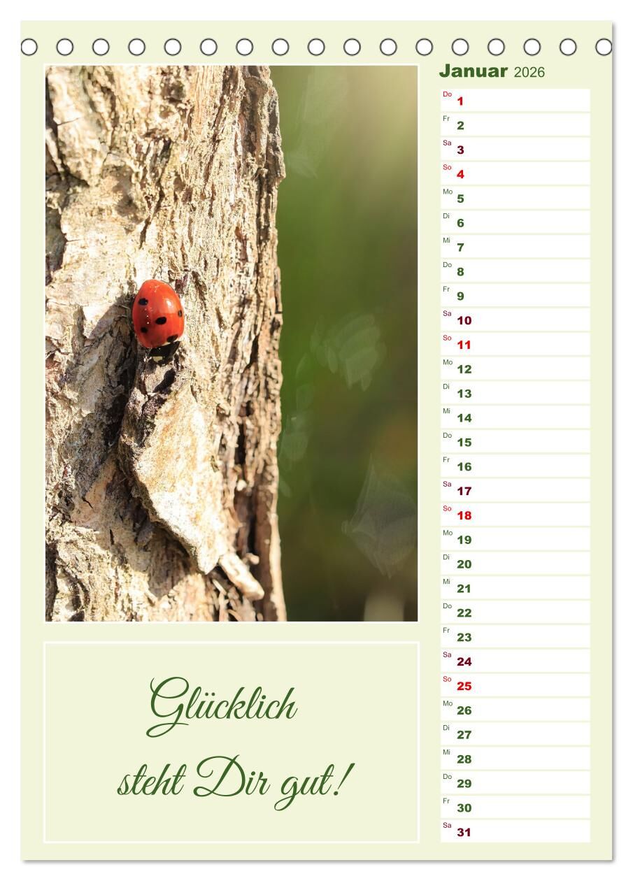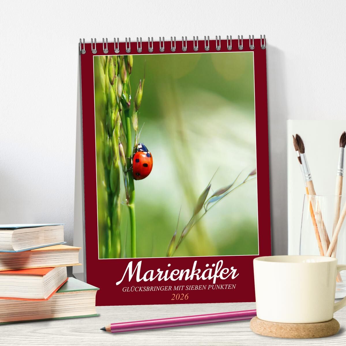 Marienkäfer, Glücksbringer mit sieben Punkten (Tischkalender 2026 DIN A5 hoch), CALVENDO Monatskalender