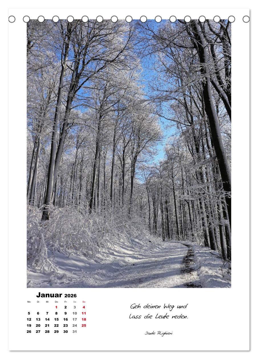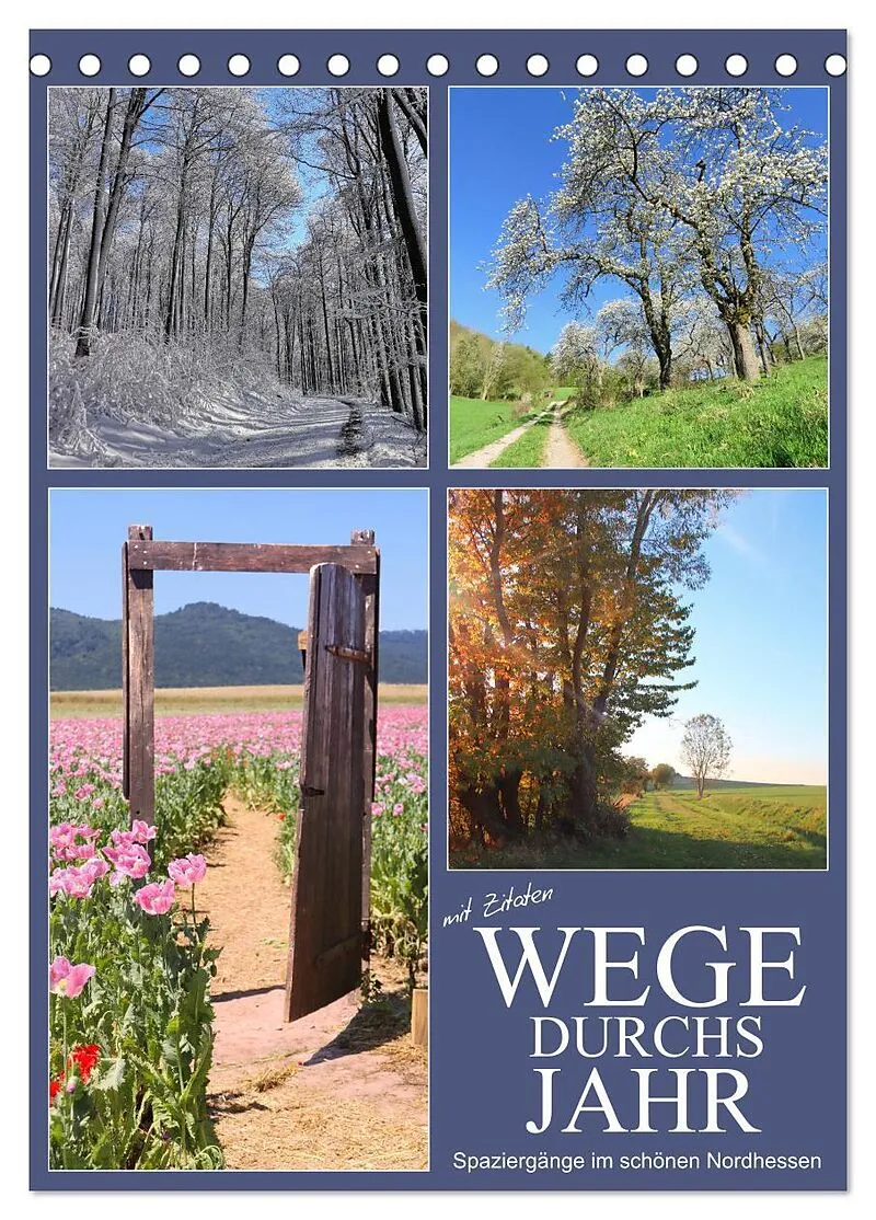 Die waldreiche Mittelgebirgslandschaft in Nordhessen ist wunderschön. Die bei zahlreichen Spaziergängen aufgenommenen herrlichen Fotos sprechen für sich. Auf jedem Kalenderblatt befinden sich zudem Zitate von bekannten Zeitgenossen, die über Wege nachgedacht h...
