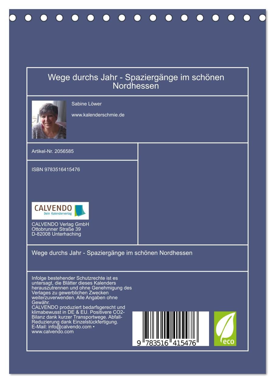 Wege durchs Jahr - Spaziergänge im schönen Nordhessen (Tischkalender 2026 DIN A5 hoch), CALVENDO Monatskalender