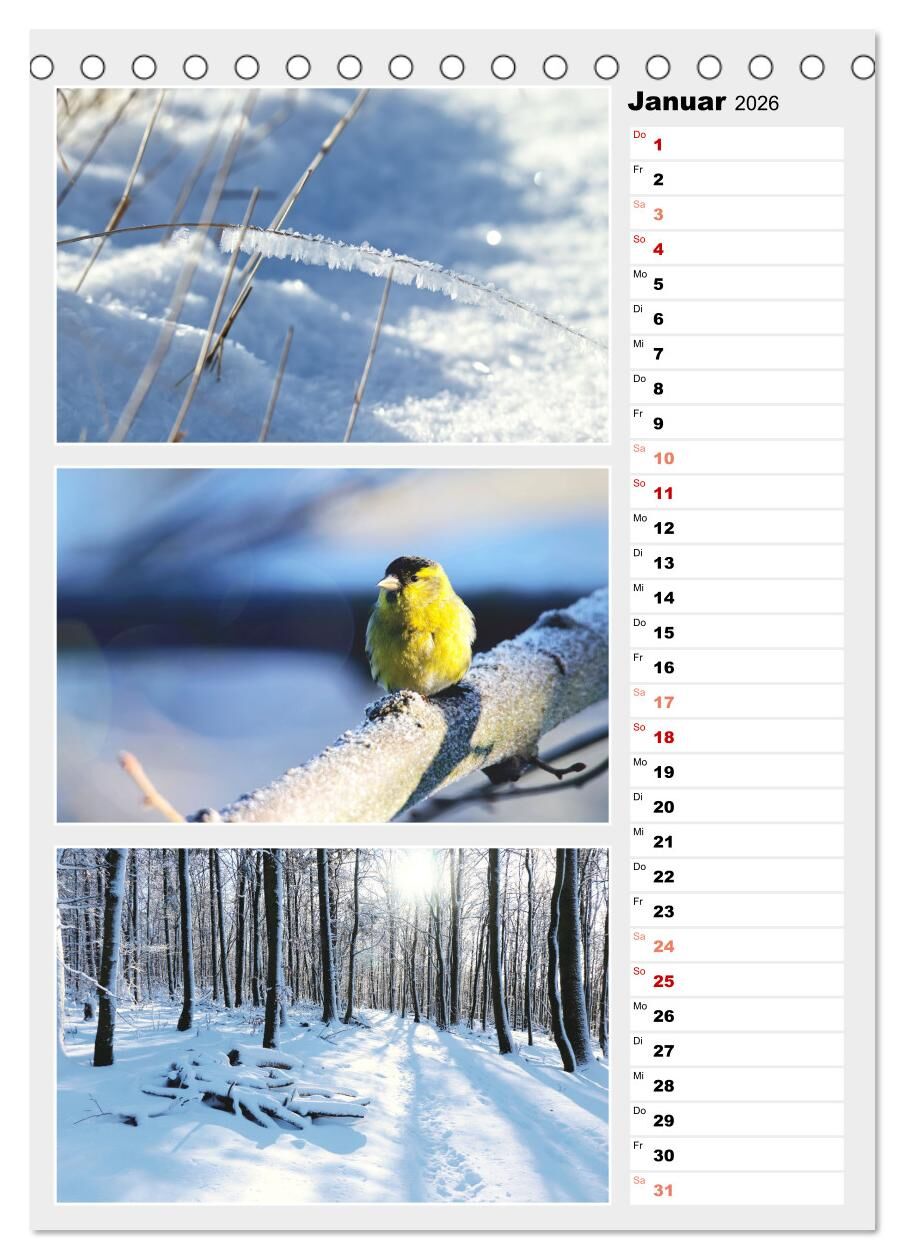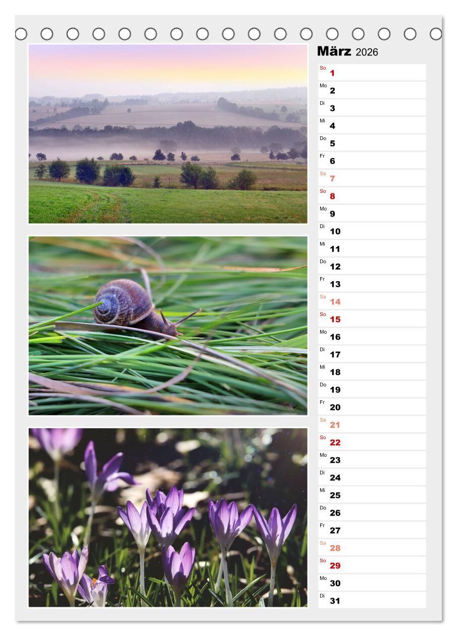 Die bunte Vielfalt der Farben der Natur zeigen Monat für Monat gleich drei farblich und jahreszeitlich aufeinander abgestimmte Fotos.