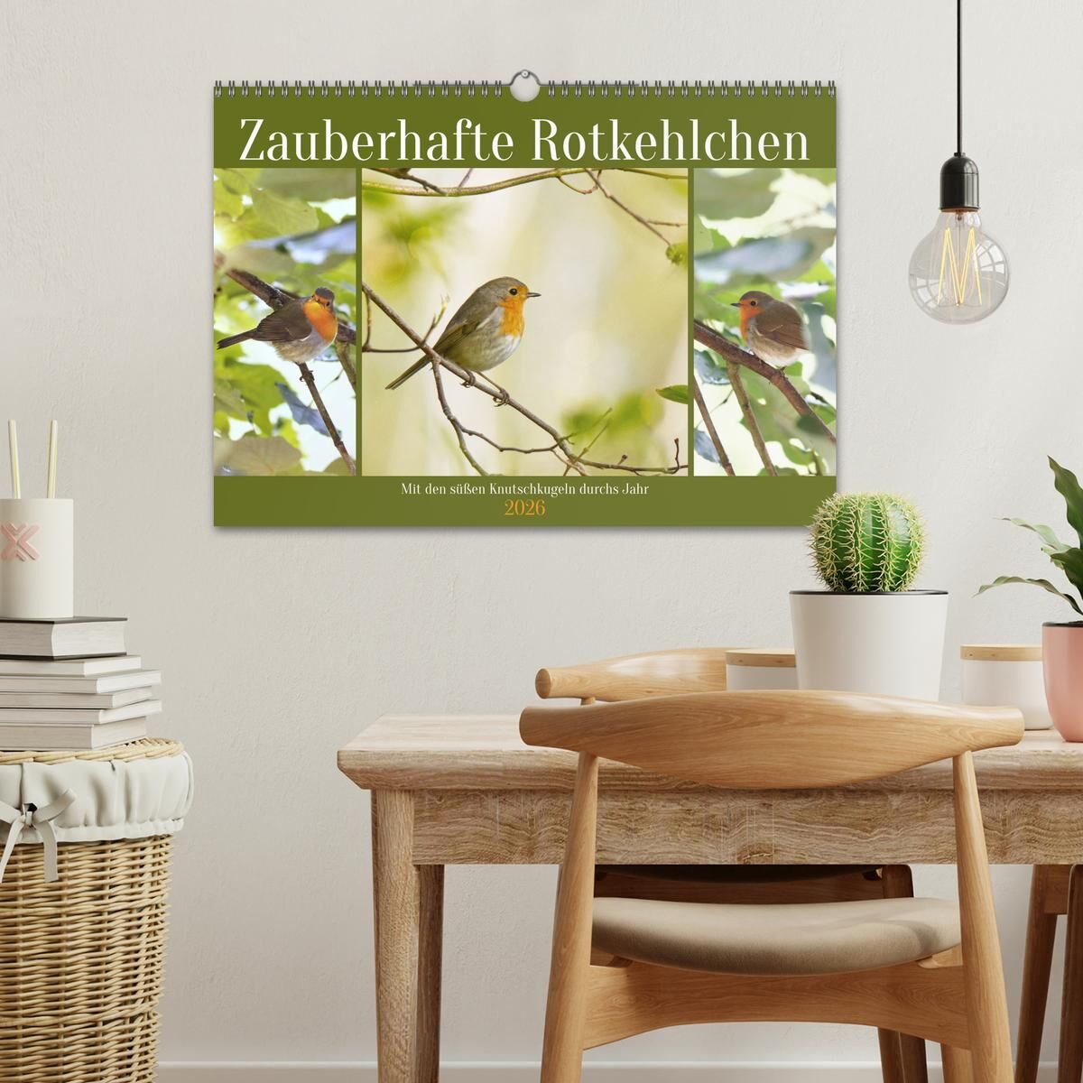 Zauberhafte Rotkehlchen (Wandkalender 2026 DIN A3 quer), CALVENDO Monatskalender