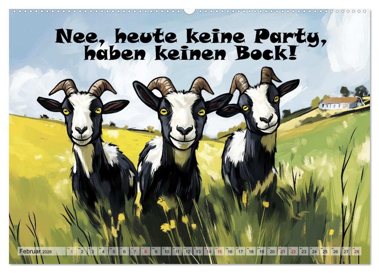Ziegen, süß aber psycho (Wandkalender 2026 DIN A2 quer), CALVENDO Monatskalender