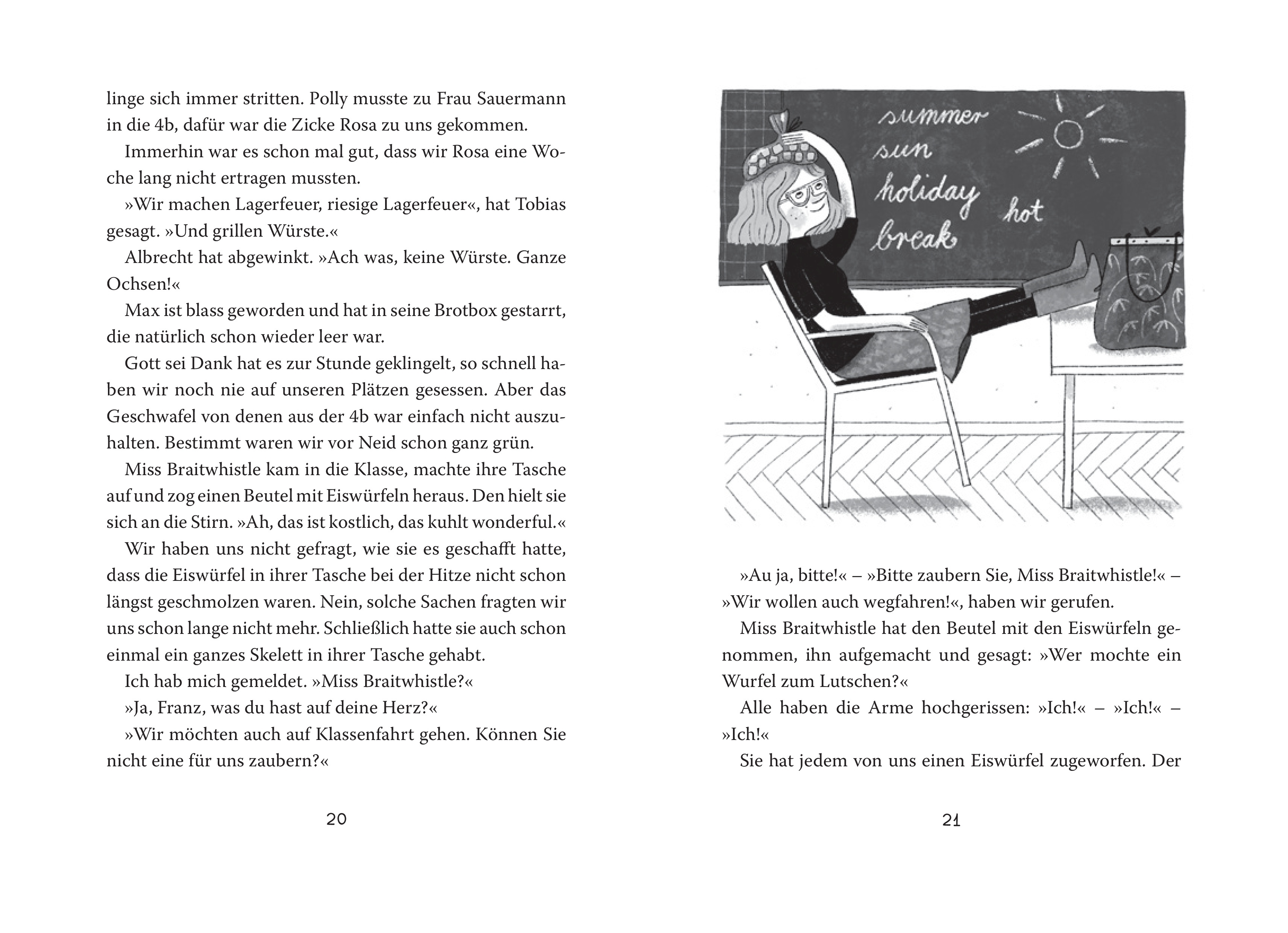 "Klassenreise mit Miss Braitwhistle" ist ein humorvolles Kinderbuch, das von einer ungewöhnlichen Klassenfahrt erzählt. Die Klasse 4a, auch bekannt als "A wie Albtraum", bricht zusammen mit ihrer etwas anderen Lehrerin Miss Braitwhistle zu einem Bauernhof auf...