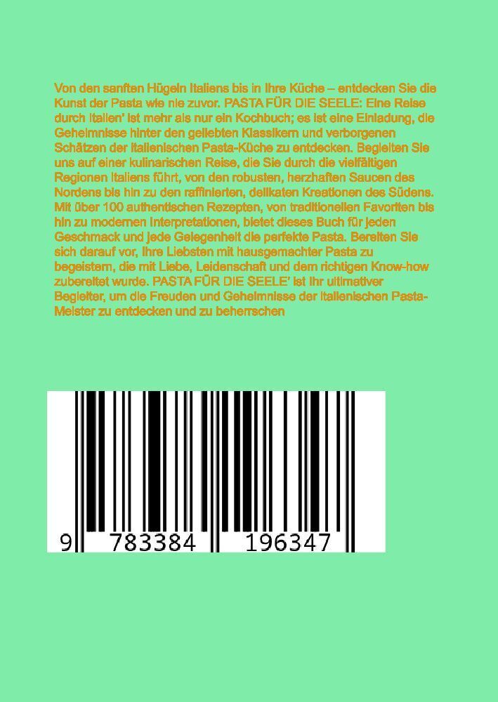 Meisterwerke der Pasta: Eine Reise durch Italien' führt Sie auf eine unvergleichliche kulinarische Entdeckungsreise. Dieses umfassende Kochbuch enthält über 150 sorgfältig ausgewählte Rezepte, die die Vielfalt und den Reichtum der italienischen Pasta-Kultur fe...