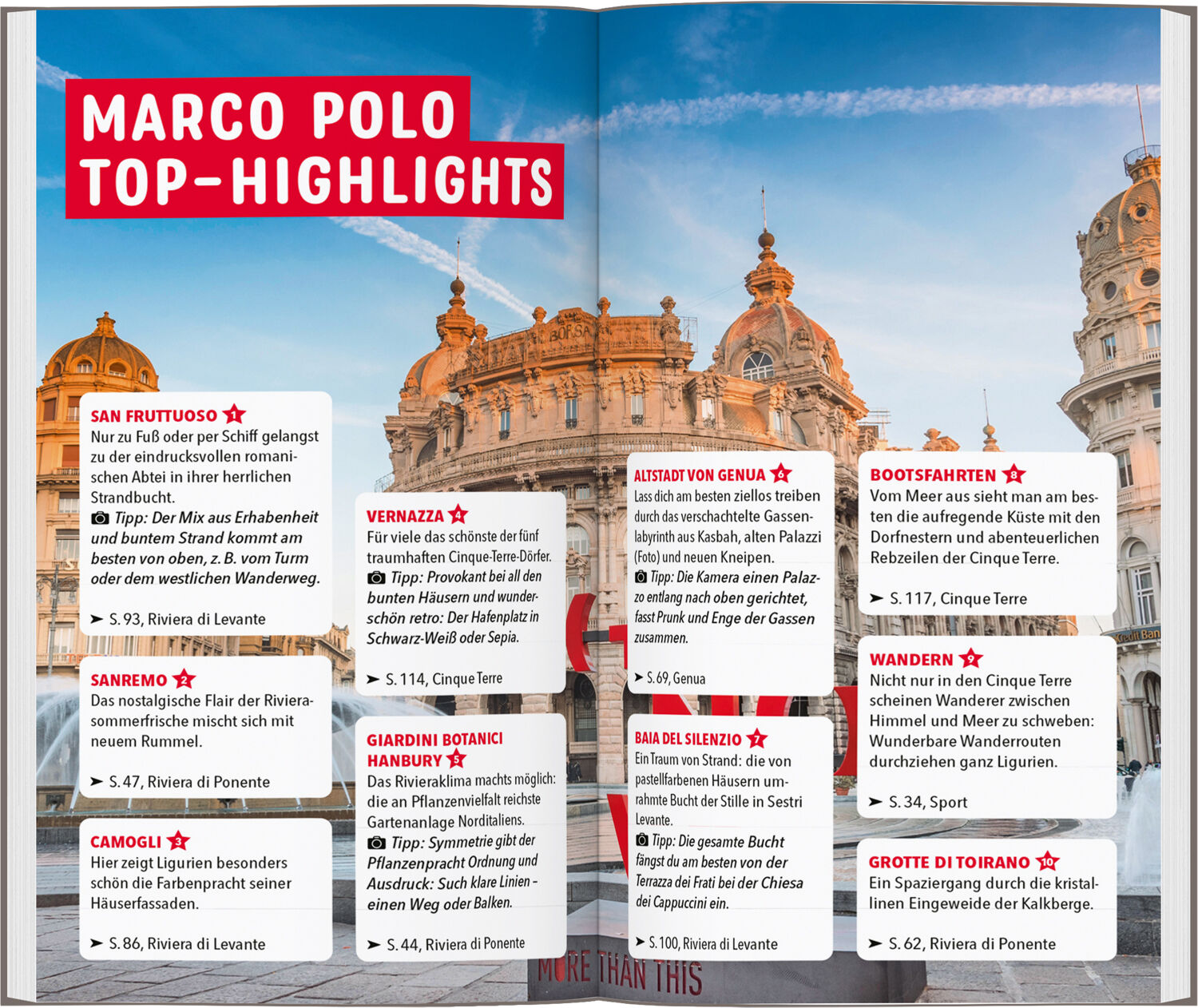 Mit dem MARCO POLO Reiseführer Ligurien, die Italienische Riviera und die Cinque Terre entdecken Welchen Palazzo muss man in Genua unbedingt fotografieren? Wo urlaubt es sich am besten an der Riviera di Ponente? Welches ist das schönste Dörfchen in den Cinque...