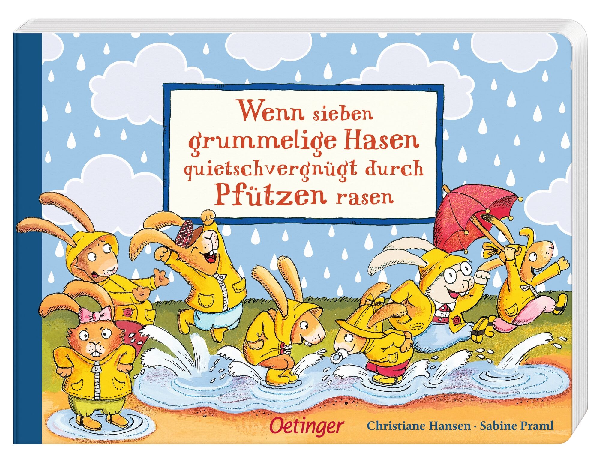 In "Wenn sieben grummelige Hasen quietschvergnügt durch Pfützen rasen" entfaltet Sabine Praml eine charmante Geschichte über die täglichen Herausforderungen im Hasenfamilienleben. An einem Morgen wollen die Hasenkinder nicht aufstehen, streiten sich beim Früh...