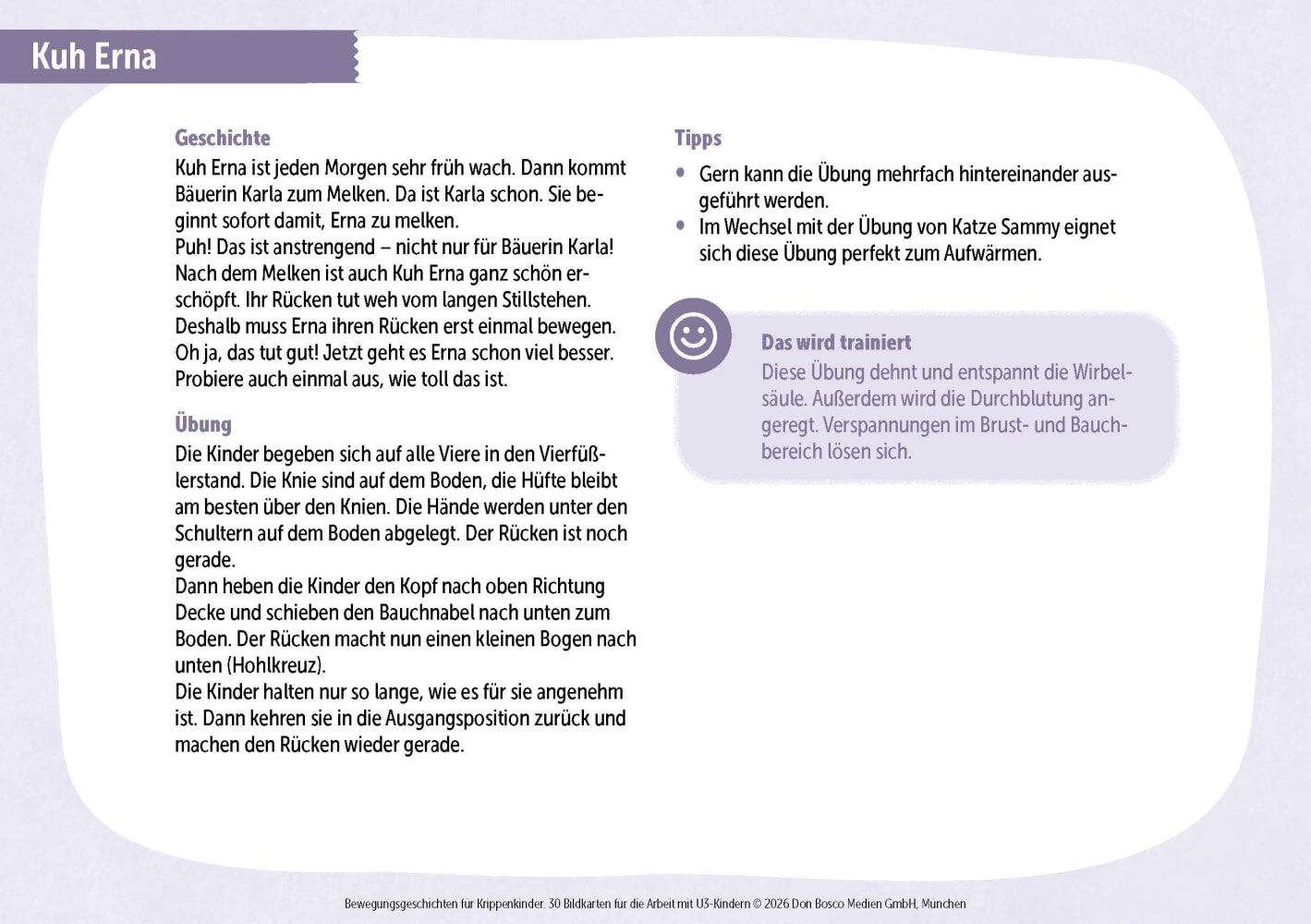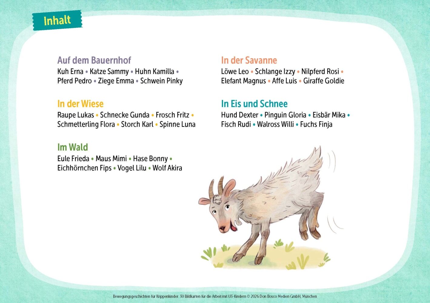 30 Bildkarten mit kurzen Bewegungsspielen für die Krippe zum Thema Tiere. Für das Babyturnen ab 1 Jahr zur Festigung motorischer Fertigkeiten. Wenn Krippenkinder zu lustigen Tieren werden: Bewegungserziehung mit Freude Auch die Kleinsten können schon an Sport ...