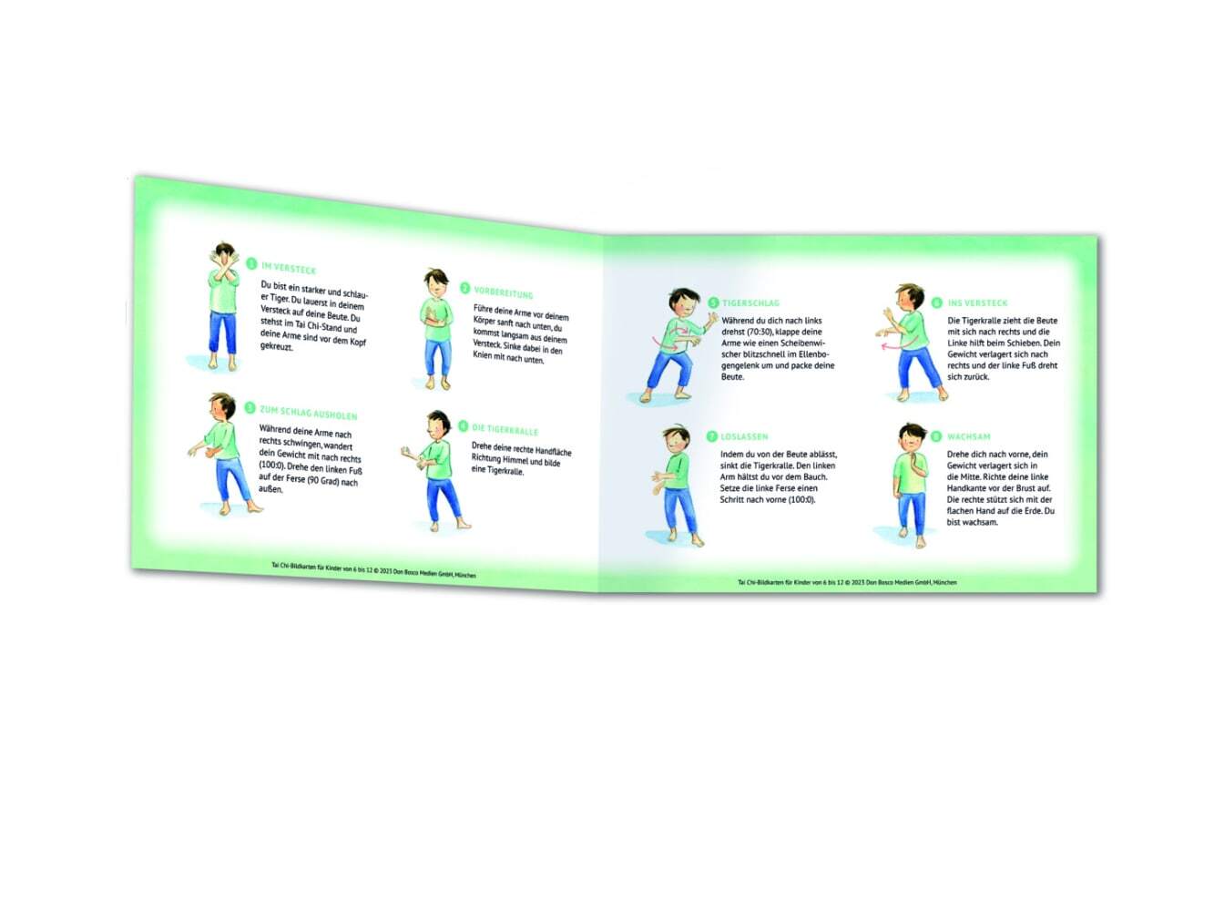 Schattenboxen für das Bewegungsangebot in der Grundschule: Klappkarten mit 14 Tai-Chi-Übungen für Anfänger. Geeignet für Kinder von 6 bis 12 Jahren. Zur Ruhe finden: Wie Tai Chi Kindern zu innerem Gleichgewicht verhilft Tigerkralle, Die Affen locken, Tritt des...