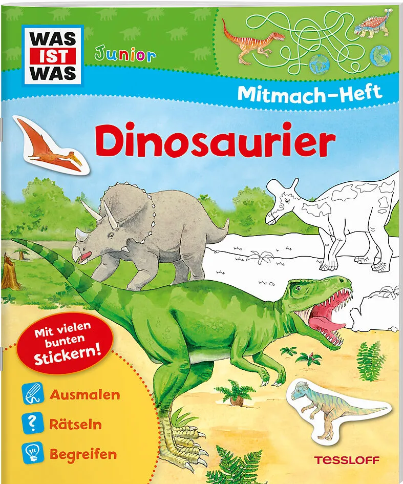 WAS IST WAS Junior Mitmach-Heft Dinosaurier Das Schattenbild des Tyrannosaurus finden, Dinosaurier in ihr Zeitalter führen oder den Fleischfresser ausmalen - eine bunte Mischung an Rätseln, Ausmalbildern und fundierten Sachinformationen zum Lieblingsthema Dino...