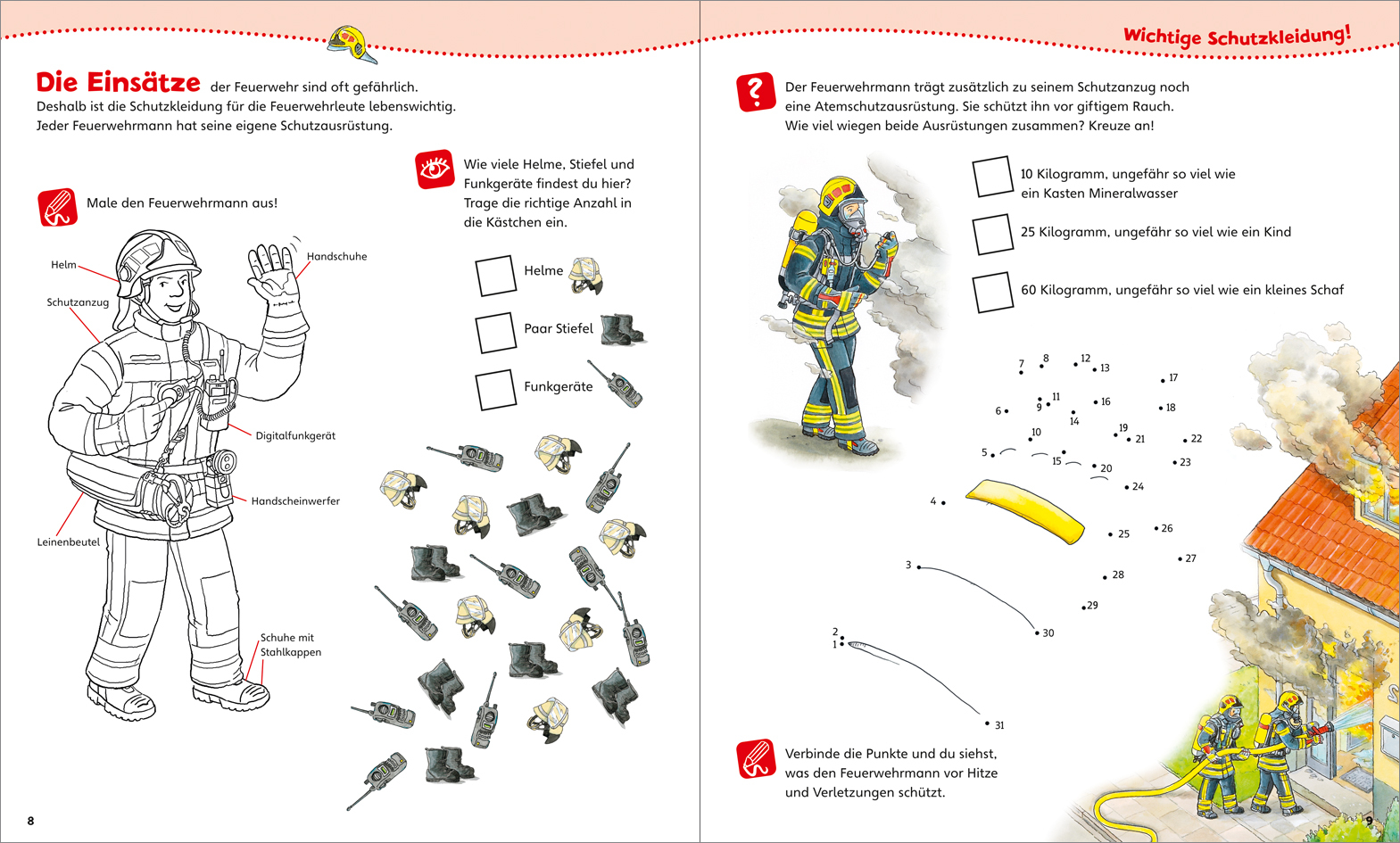 WAS IST WAS Junior Mitmach-Heft Feuerwehr Die Feuerwehr hat viele Aufgaben. Sie kommt, wenn es brennt, und löscht das Feuer. Sie sichert bei Verkehrsunfällen die Unfallstelle ab oder entfernt nach einem Unwetter umgestürzte Bäume. Mit dem Mitmach-Heft aus der ...