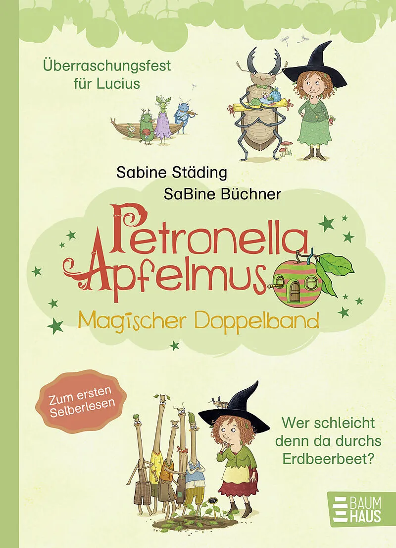 Mit gleich zwei Geschichten die ersten Leseerfolge feiern: Im ersten Teil plant Petronella eine Überraschungsparty für ihren Freund, den Hirschkäfer Lucius - doch dann verhext sie sich aus Versehen selbst in ein Eichhörnchen. Zum Glück eilen ihr die Zwillinge...