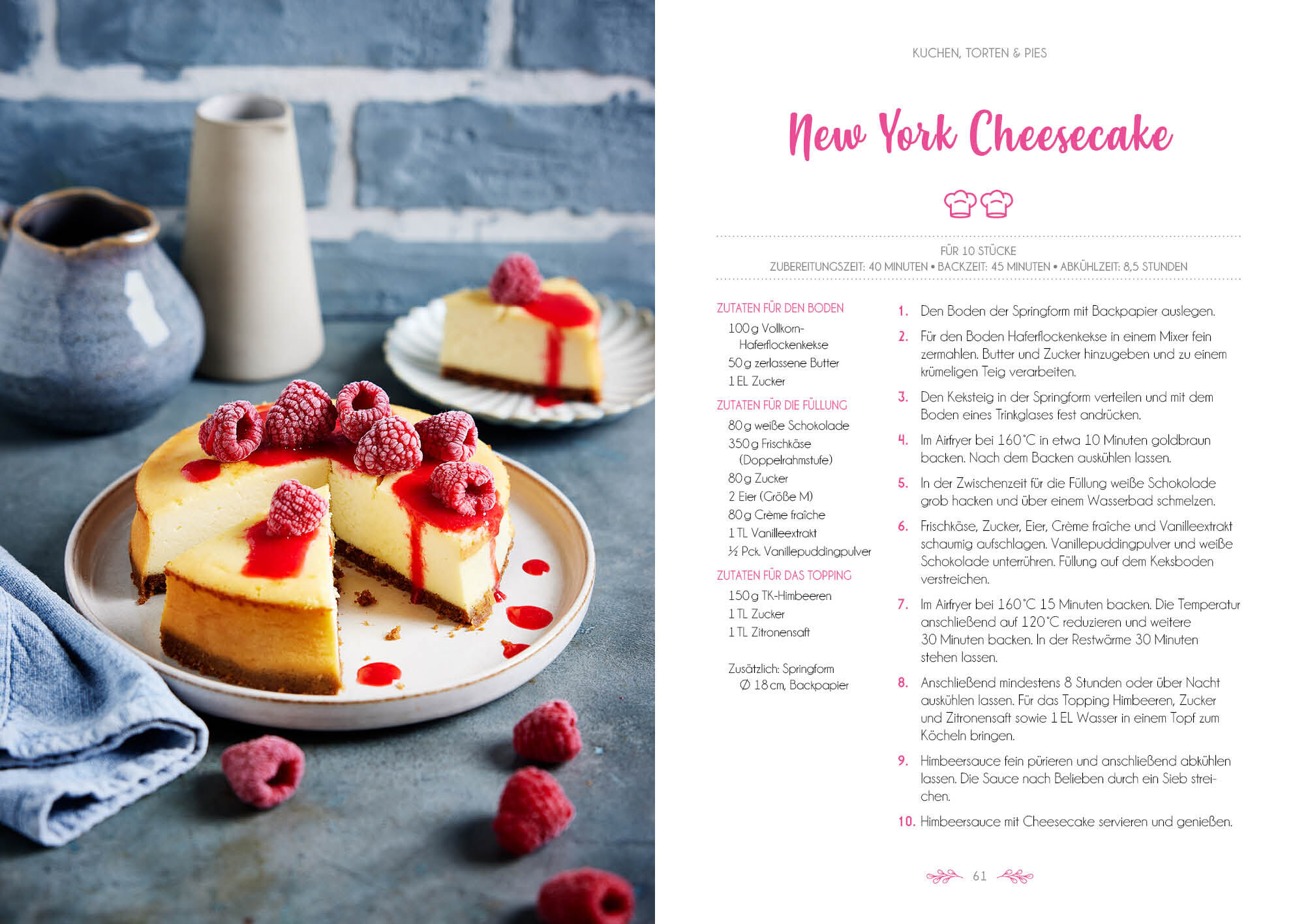 Backen ohne Backofen einfach, schnell & lecker! Schoko-Himbeer-Donuts, New York Cheesecake, Pizza-Laugenkringel oder knusprige Karotten-Parmesan-Cracker: Mit dem Airfryer zauberst du im Handumdrehen kreatives und leckeres Gebäck! Sabrina Sue Daniels verrät...