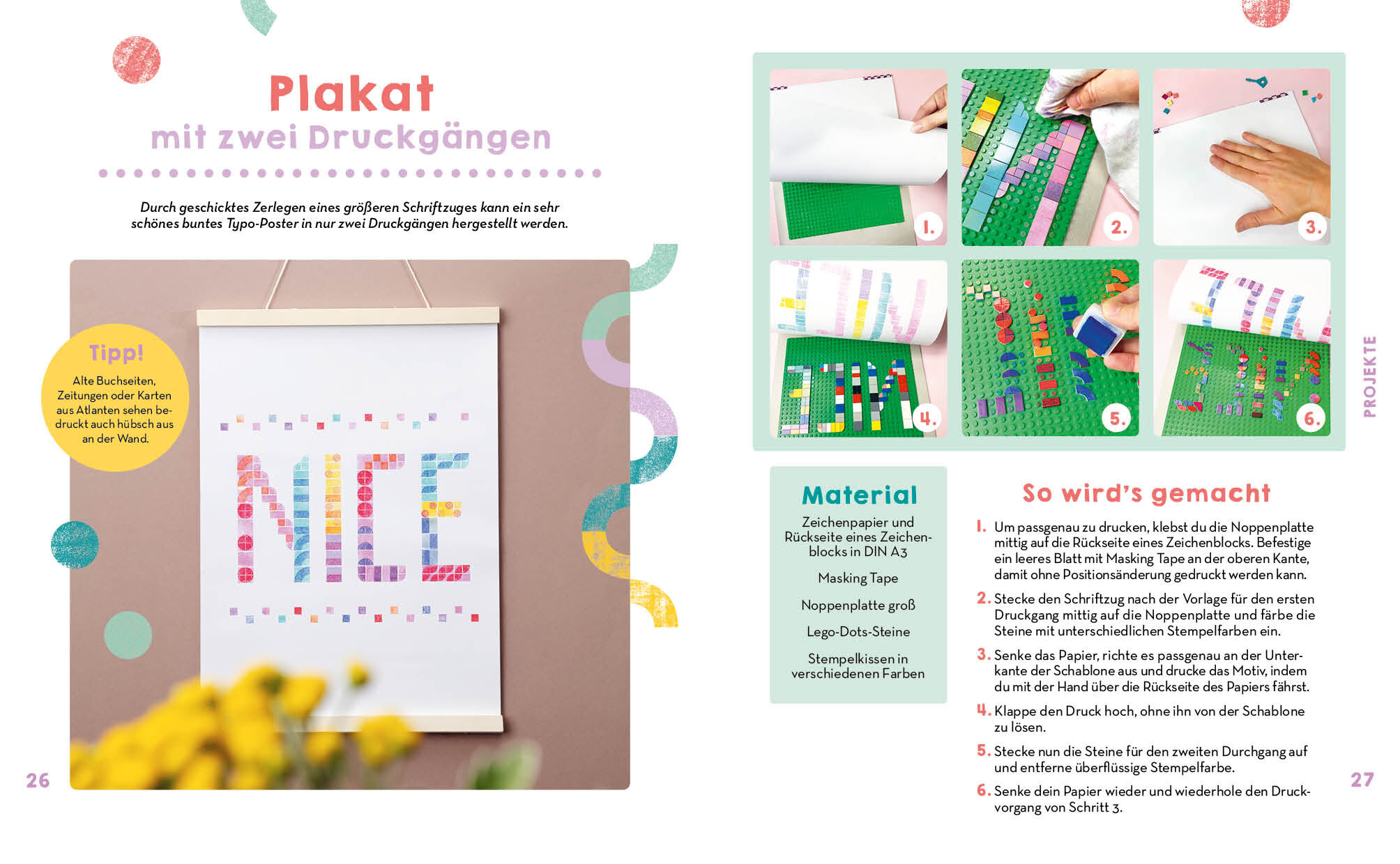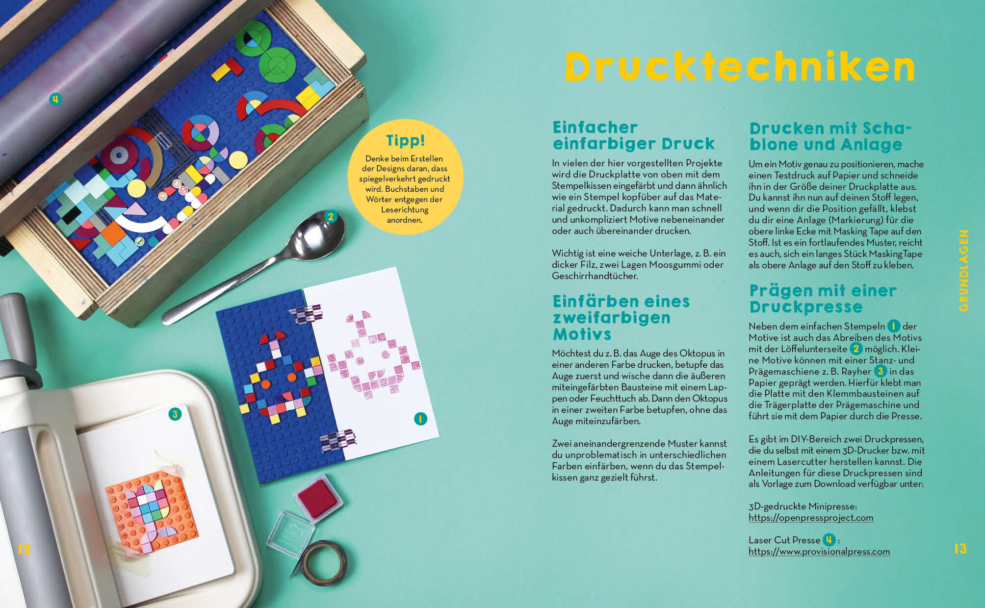 Arrangiere kleine Plastiksteine wie flache Klemmbausteine , Lego - oder Ministeck -Steinchen zu faszinierenden Pixelmustern ! Nur noch etwas Farbe auf die Flächen auftragen, den Abdruck machen und in kürzester Zeit und mit wenig Aufwand sind kleine und große ...