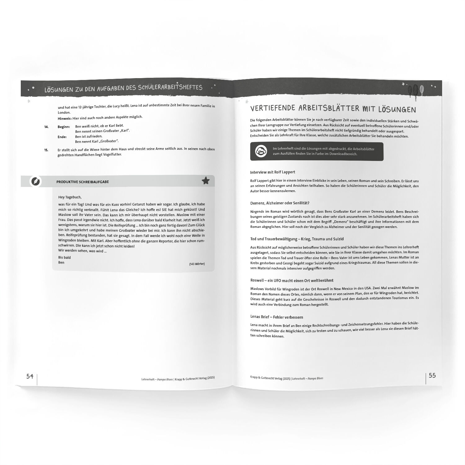 Pflichtlektüre in Baden-Württemberg für den Hauptschulabschluss 2026. Unser Lehrerheft zum Schülerarbeitsheft zu Pampa Blues von Rolf Lappert enthält nicht nur die Lösungen der Aufgaben, sondern unterstützt bei der Planung eines abwechslungsreichen Deutschunt...