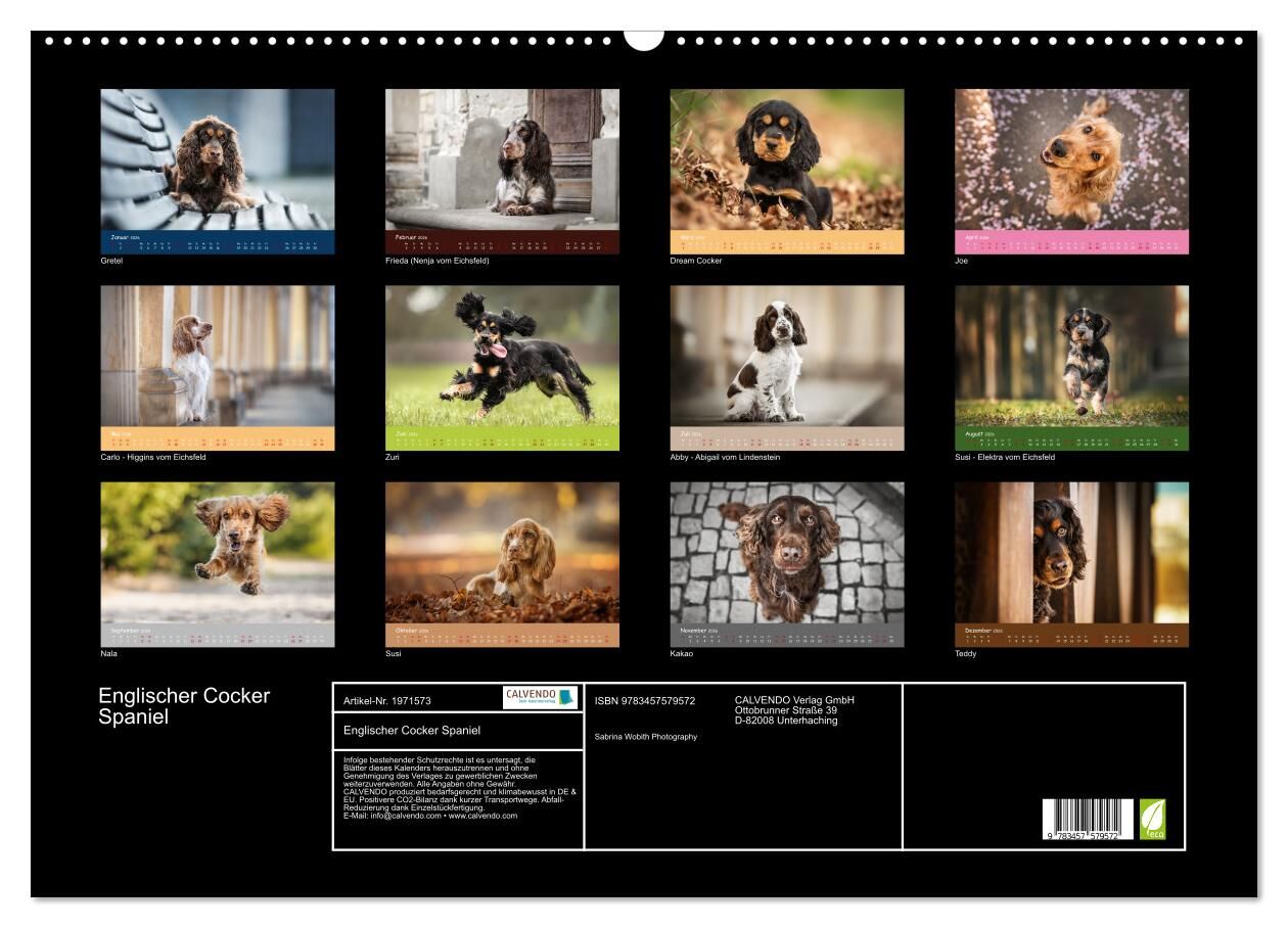 Dieser Kalender zeigt die Vielfalt des Englischen Cocker Spaniels in einigen seinen vielen Farbvarianten. Der Englische Cocker Spaniel fotografisch festgehalten an mehren Orten, ob in der Stadt, in der Natur oder in voller Aktion.