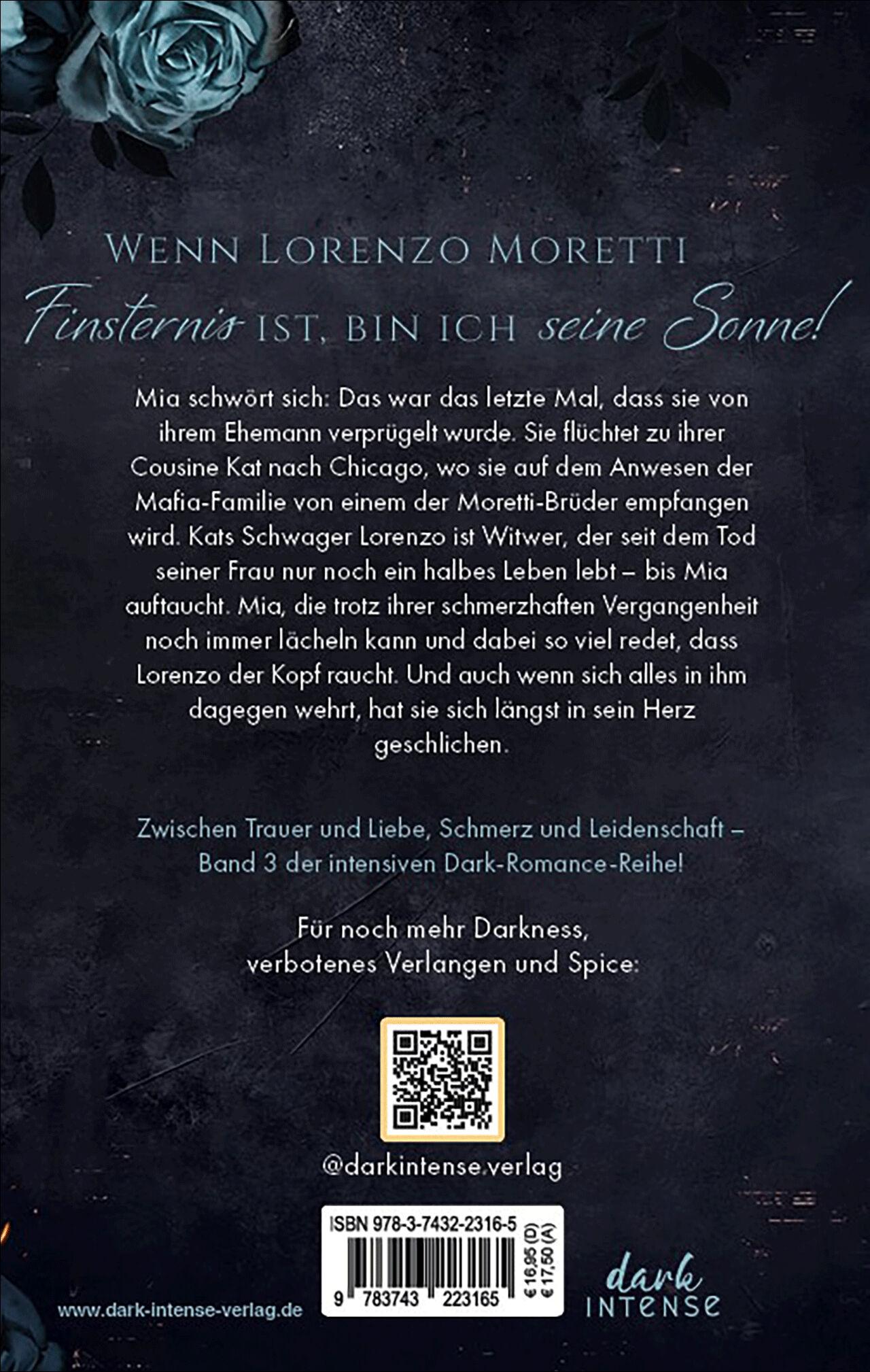 Wenn Lorenzo Moretti Finsternis ist, bin ich seine Sonne. Mia schwört sich: Das war das letzte Mal, dass sie von ihrem Ehemann verprügelt wurde. Sie flüchtet zu ihrer Cousine Kat nach Chicago, wo sie auf dem Anwesen der Mafia-Familie von einem der Moretti-Brüd...