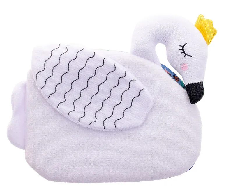 Das wunderschöne Stoffbuch in Schwanform aus hochwertigem Frottee und zartem Stoff mit goldglitzerndem Knistereffekt zum Kuscheln, Spielen und Plantschen in der Badewanne ist ideal geeignet für Babys ab 6 Monaten . Ein tolles Geschenk zur Geburt! Komm und kus...
