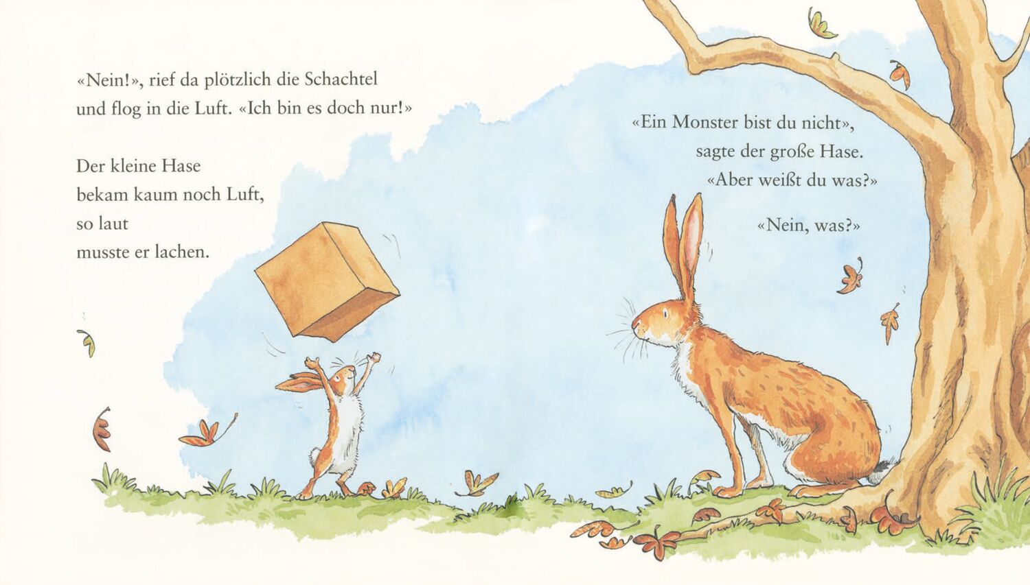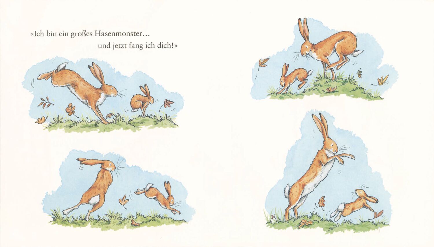 Der Wald lädt zum Spielen ein. Die bunten Blätter wirbeln durch den Wind. Da entdeckt der kleine Hase eine Kiste und schon beginnt das Spiel. Und wer landet dabei direkt in den Armen vom großen Hasen? Wir spielen Fangen! Der Wald lädt zum Spielen ein. Die bunt...