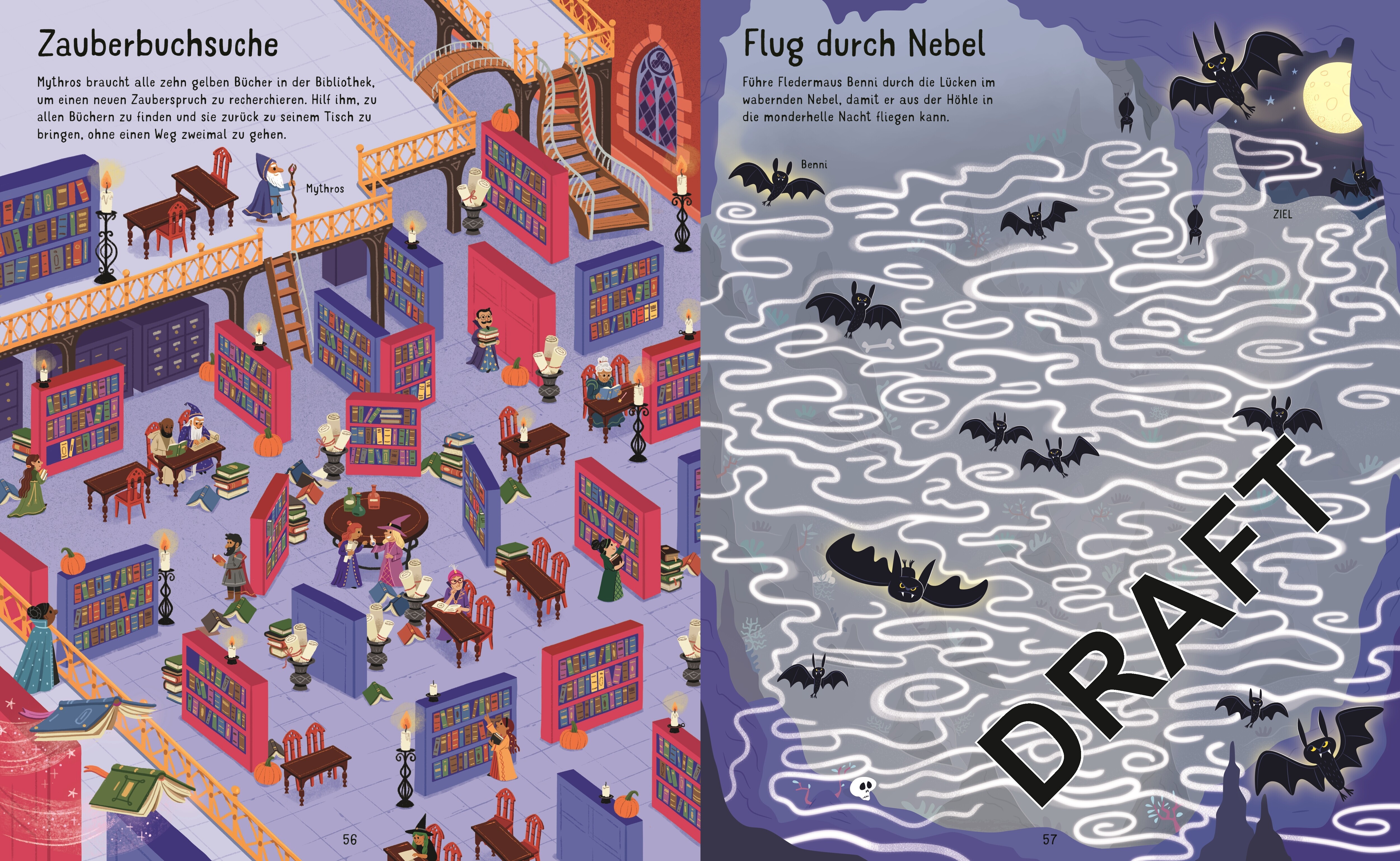 Rette sich, wer kann! Wage dich in über 40 gruselige Labyrinthe! Führe den Geisterpiraten-Kapitän zum Steuerrad, schleiche an lauernden Werwölfen vorbei und finde einen sicheren Weg zum Haus des Zauberers. Auf jeder Seite wartet eine neue Herausforderung und ...