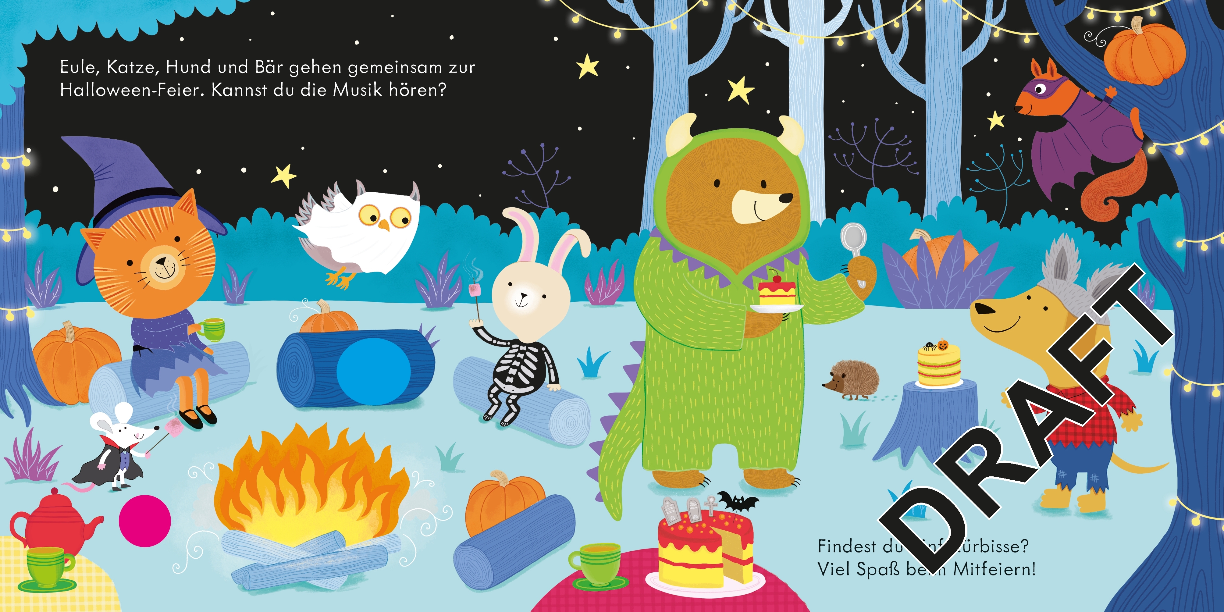 Sounds mit Gänsehaut-Garantie! Die Tiere haben sich für eine Halloween-Party verkleidet. Hör zu, wie sie miauen, heulen oder brüllen und finde die Kürbisse auf jeder Seite. Durch leichte Berührung der Soundchips ist das Einschalten der fünf Geräusche auch für...