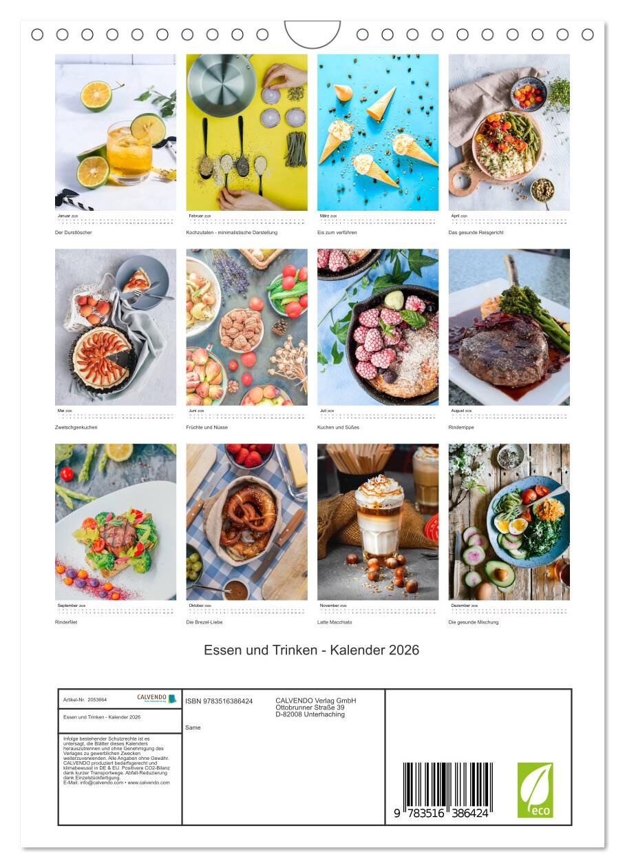 Essen und Trinken - Kalender 2026 (Wandkalender 2026 DIN A4 hoch), CALVENDO Monatskalender