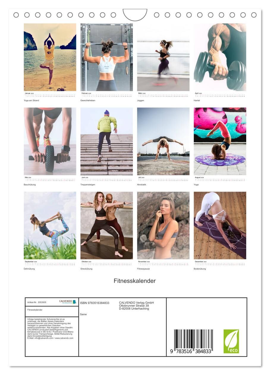 Unter Fitness wird im Allgemeinen körperliches und oft auch geistiges Wohlbefinden verstanden. Fitness drückt das Vermögen aus, im Alltag leistungsfähig zu sein und Belastungen eher standzuhalten. Dieser Kalender hält allem stand und bringt die Fitnessfotograf...