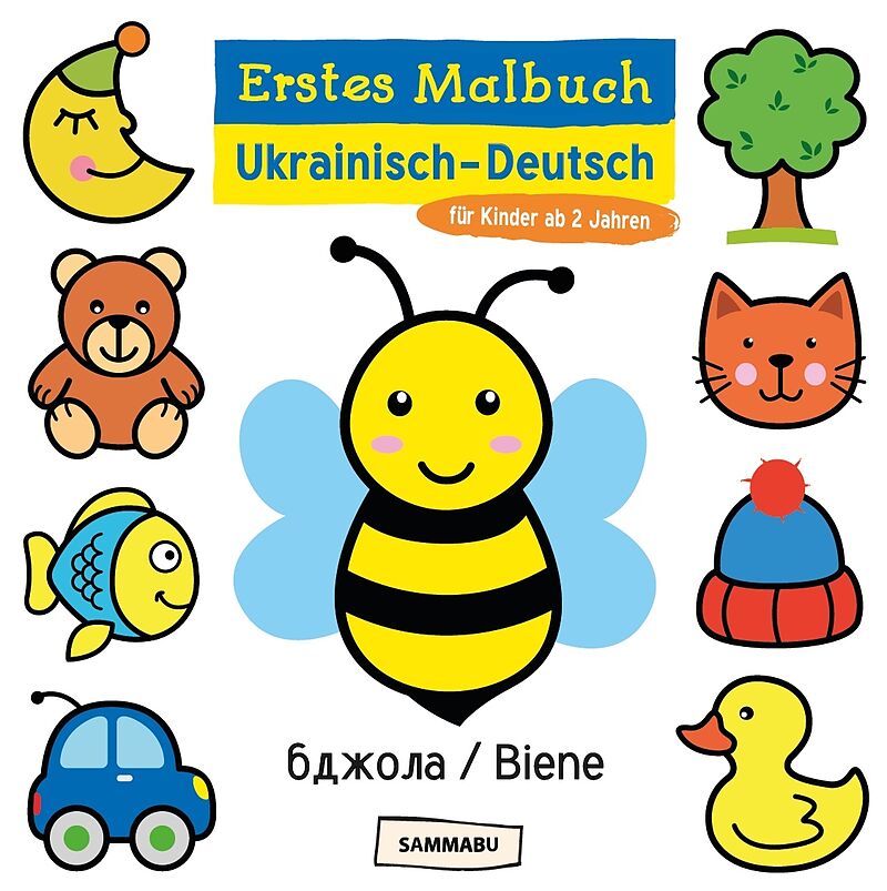 In diesem zweisprachigen Malbuch von SAMMABU warten niedliche Tiere, Spielzeuge, Fahrzeuge, Lebensmittel, Kleidungsstücke und viele andere Dinge aus der Lebenswelt von Kindern und Kleinkindern darauf, in bunten Farben ausgemalt zu werden. Jedes Bild wird sowo...