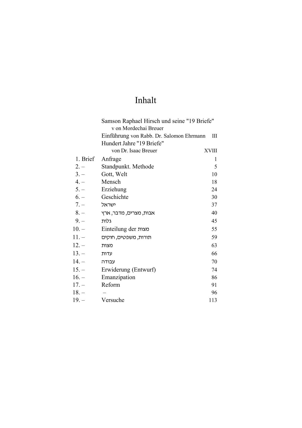 Die neunzehn Briefe Die neunzehn Briefe ist seine kurze, aber geradezu geniale Einführung in die Gedankenwelt von Rabbiner Hirsch. Eine Einführung in das philosophische Denken des grossen Lehrers. Samson Raphael Hirsch (1808-1888) war ein deutscher Rabbiner. D...