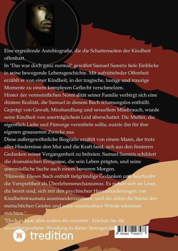 Eine ergreifende Autobiografie, die die Schattenseiten der Kindheit offenbart. In "Das war doch ganz normal" gewährt Samuel Samiris tiefe Einblicke in seine bewegende Lebensgeschichte. Mit aufrüttelnder Offenheit erzählt er von einer Kindheit, in der tragische...