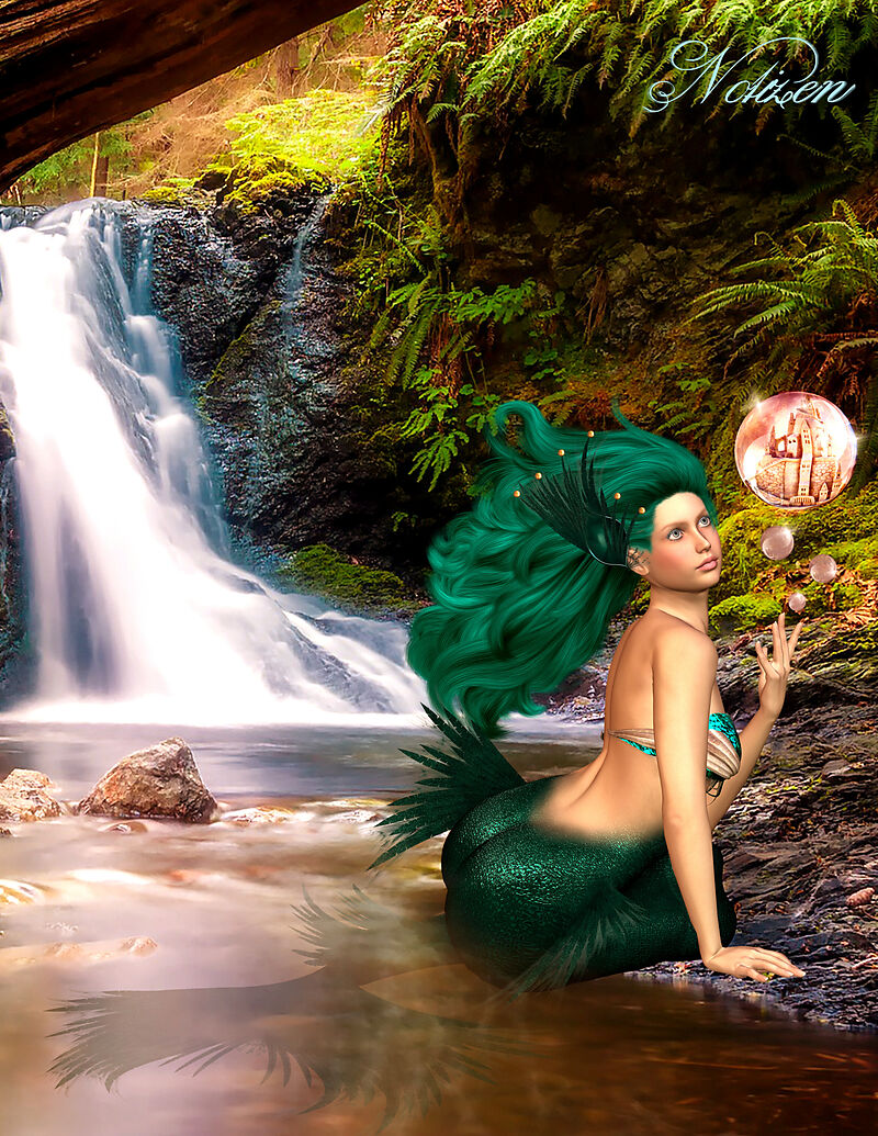 Fantasy Notizbuch: Tjirell, die Meerjungfrau - weiße Seiten mit Eckmotiv