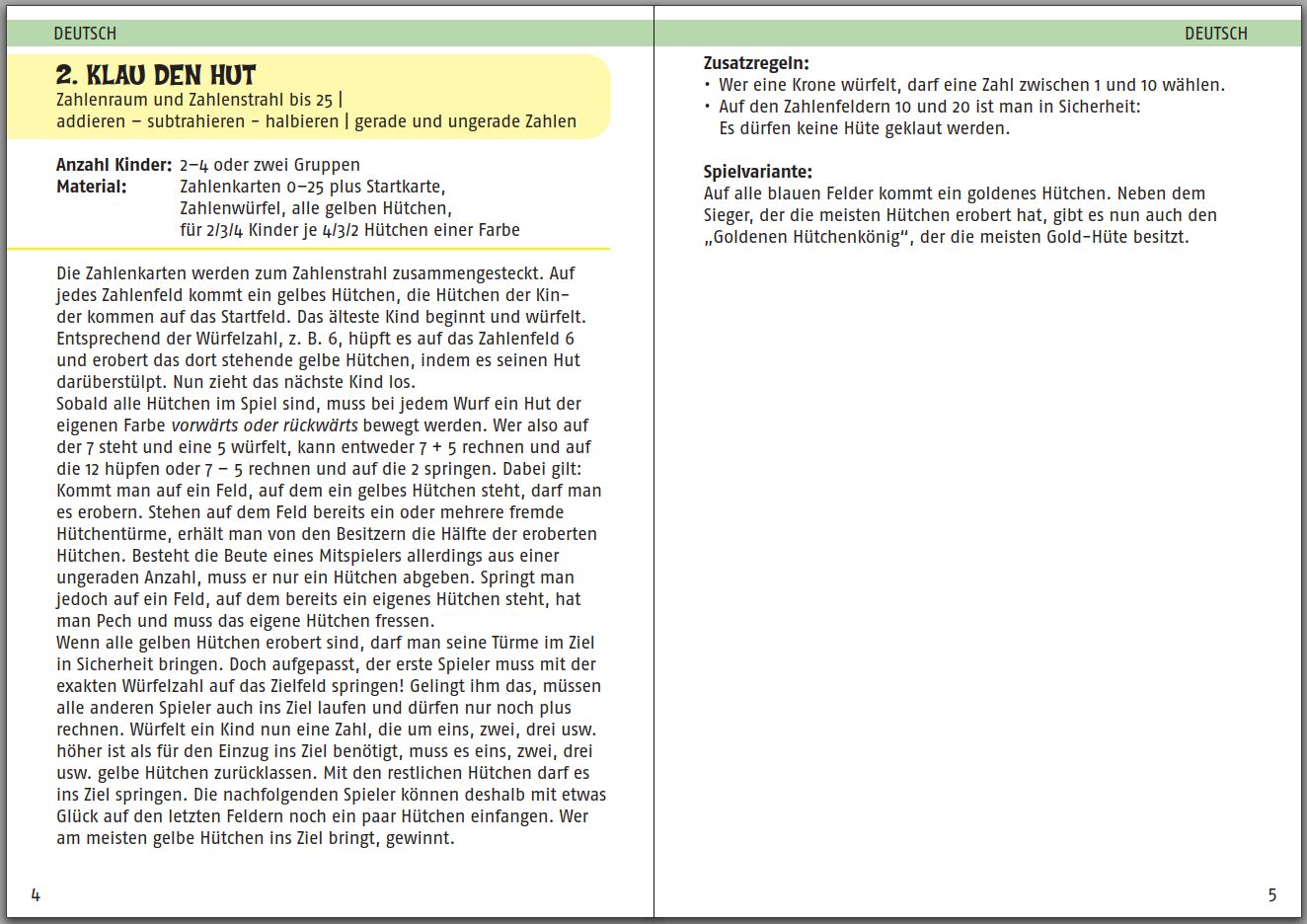 Mit Spiel und Spass fit im Zahlenraum bis 25 werden! Wem gelingt es, möglichst viele Hütchen zu erobern und sicher ins Ziel zu bringen? Gefragt sind Addieren und Subtrahieren im Zahlenraum bis 25 . Doch aufgepasst, wer Pech hat, muss die Hälfte seiner Hütchen...