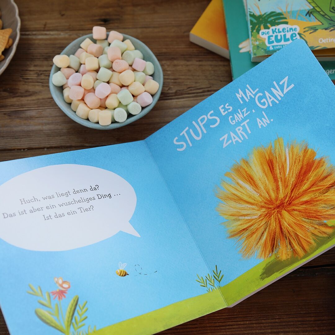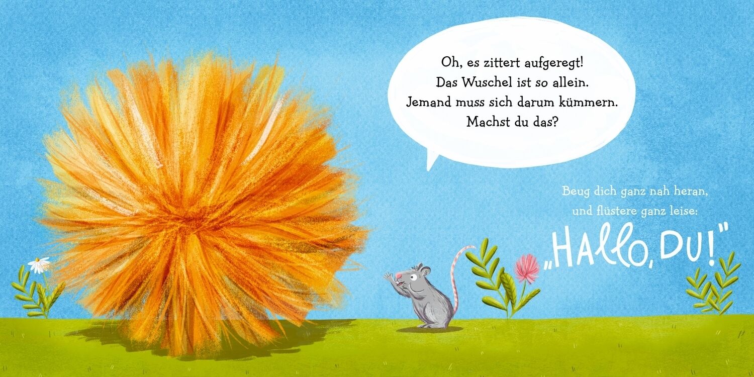Kannst du das tierische Geheimnis lüften? Was ist das denn für ein wuscheliges Wesen? Von Seite zu Seite kann das Kind durch Klopfen, Stupsen, Flüstern und Pusten mithelfen, um herauszufinden, was sich hinter dem Wuschel verbirgt. Nach und nach kommen Augen, ...