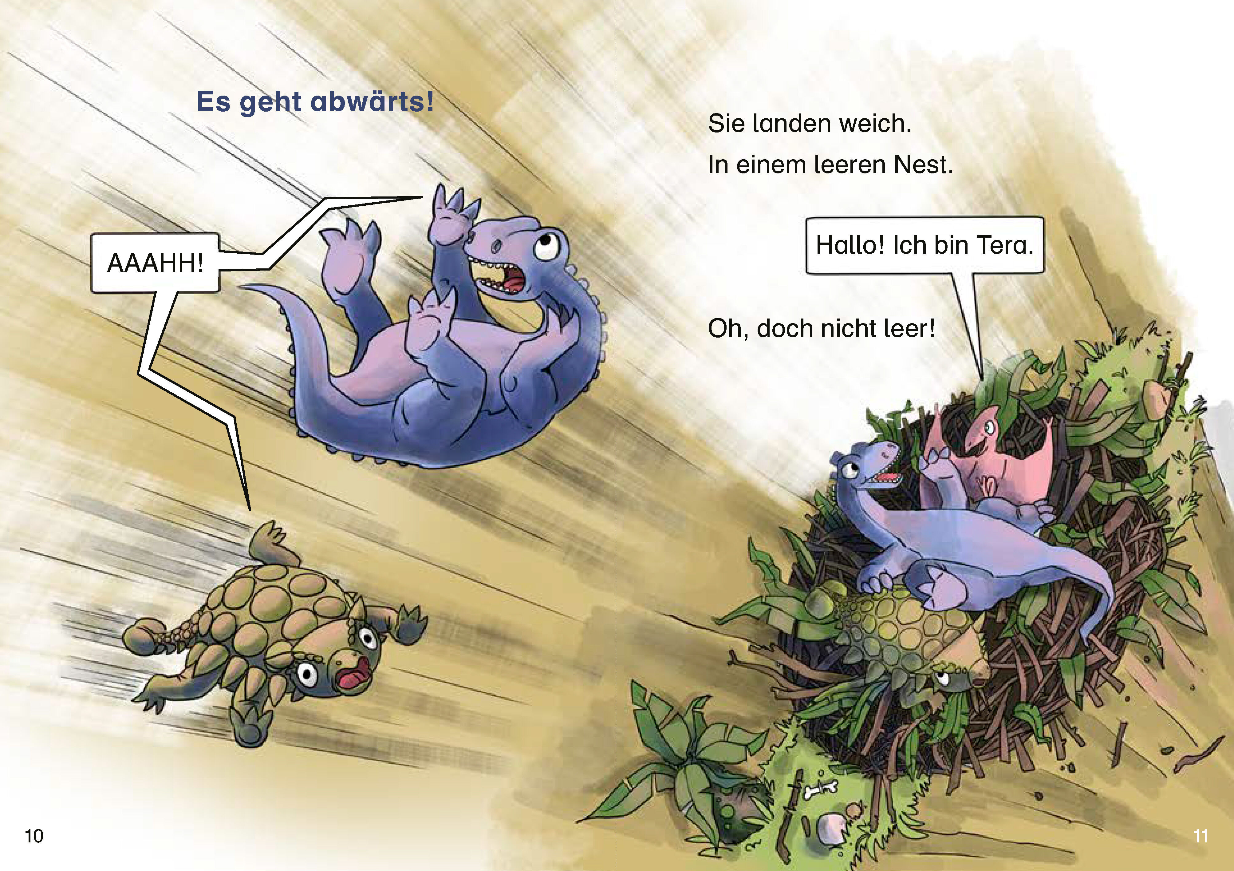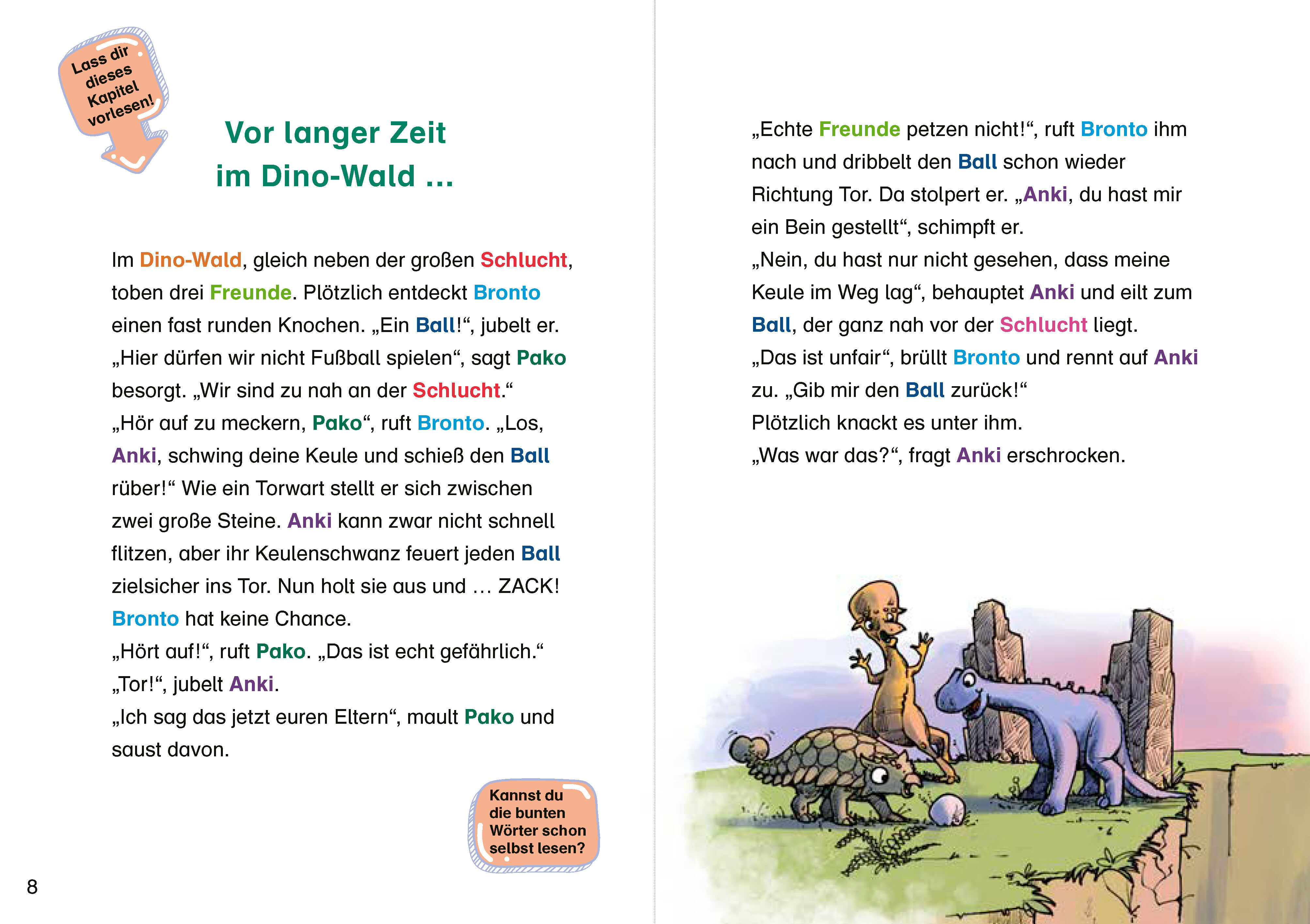 Echte Freunde schaffen alles! Die Dino-Kinder Bronto, Anki und Tera sind in einer tiefen Schlucht gelandet. Da greift plötzlich ein gefährlicher T-Rex an! In letzter Sekunde entkommen die kleinen Dinos, aber schon lauert im Wasser die nächste Gefahr. Ob sie na...
