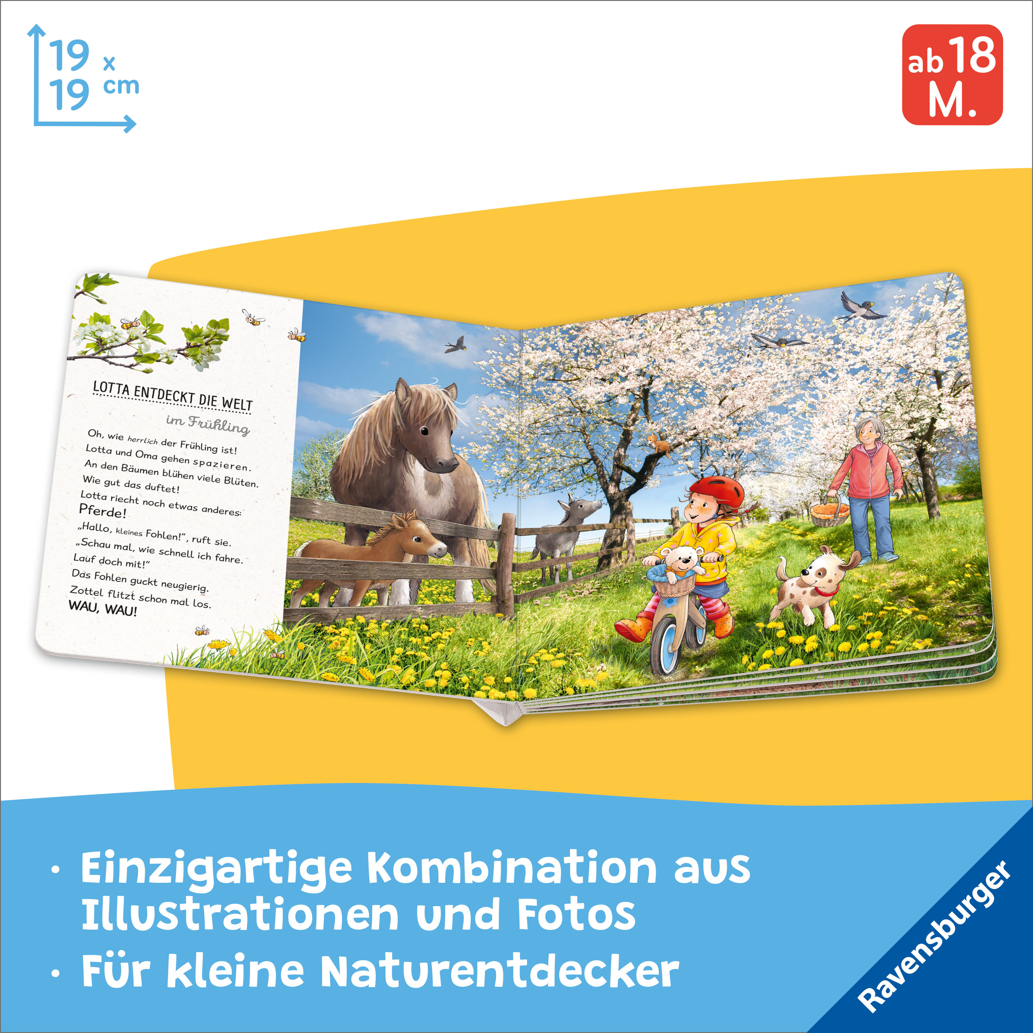 Ein Buch über den Frühling für Naturkinder ab 18 Monaten Oh, wie schön der Frühling ist! Lotta staunt über das kleine Fohlen auf der Weide, pflanzt Gemüse mit Oma im Garten und entdeckt ein Vogelnest. Diese erste Vorlesegeschichte lädt Kinder ab 18 Monaten ein...