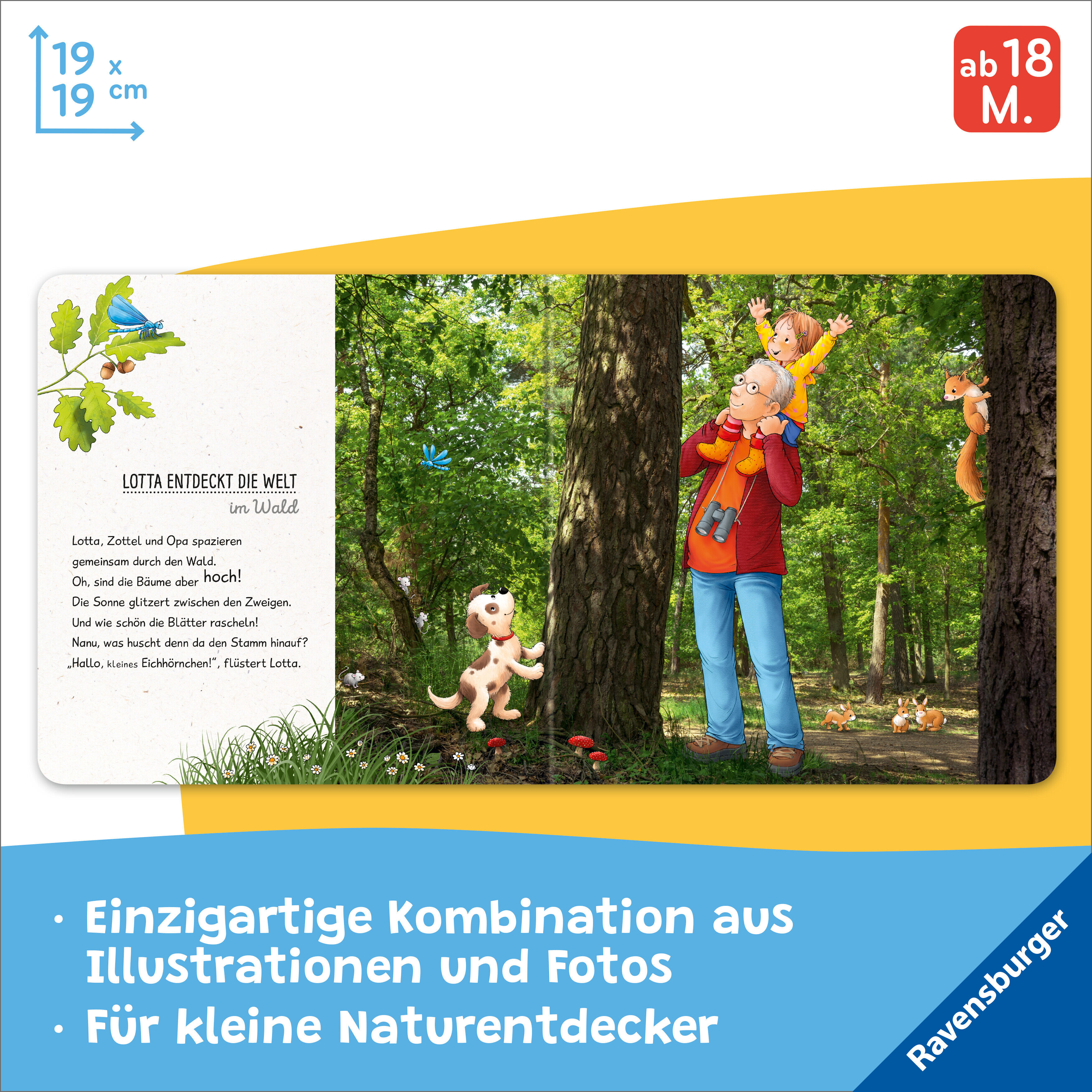 Komm mit Lotta in den Wald! Was knackt da im Gebüsch und wer zwitschert oben im Baum? Lotta ist mit Opa und Hund Zottel im Wald. Hier gibt es viel zu entdecken: Überall verstecken sich spannende Tiere und die Blätter an den Bäumen rascheln im Wind. Diese erste...