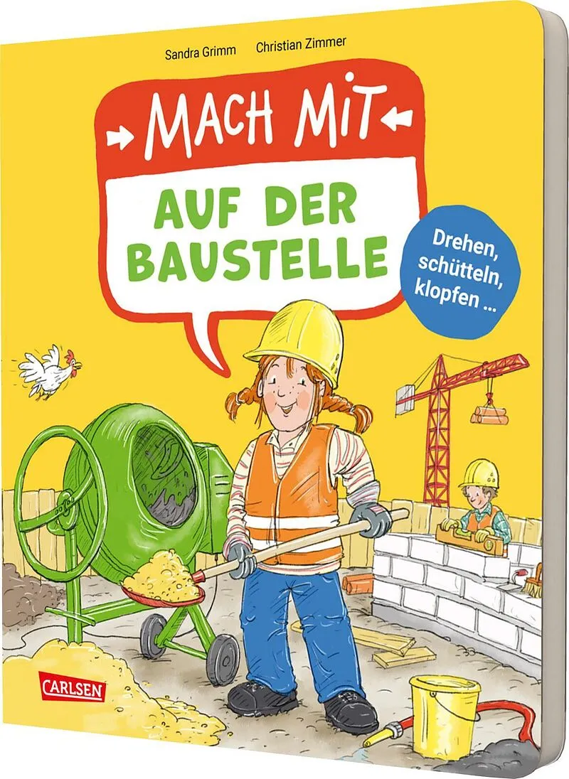 Mach mit - Auf der Baustelle Baustellenwissen zum Mitmachen - aktiv lernen mit allen Sinnen Ob schütteln, rufen, drehen, klopfen oder pusten - auf jeder Seite werden die Kinder zum Mitmachen aufgefordert und erfahren dabei jede Menge über die Arbeit auf der Ba...