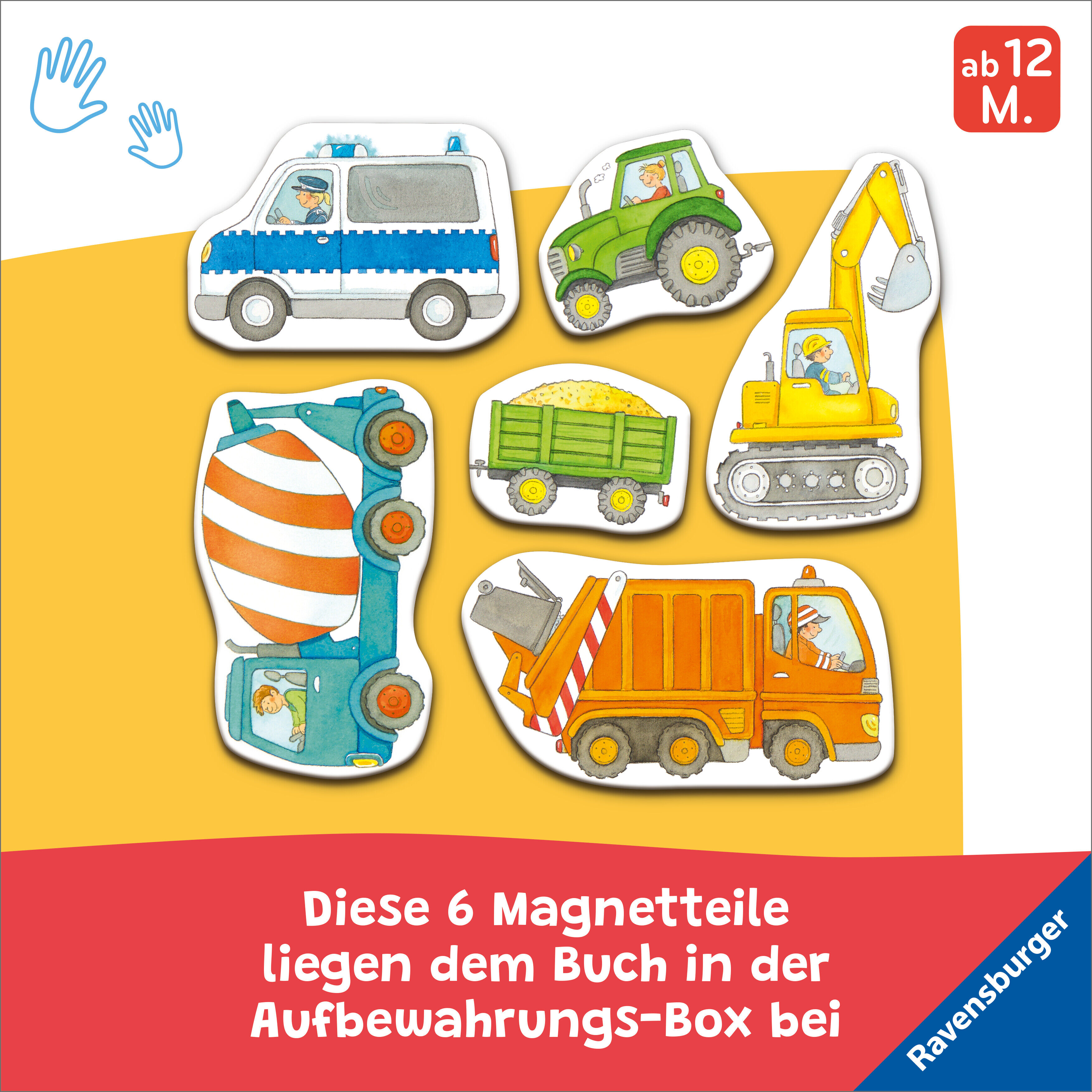 Welches Fahrzeug fährt wohin? Der Traktor ist auf dem Feld unterwegs. Doch wo ist der Anhänger für das Korn? Und wer kommt da mit lautem Tatütata angefahren? In diesem Spielbuch können Kinder ab 12 Monaten sechs verschiedene Fahrzeug-Magnete auswählen und in d...