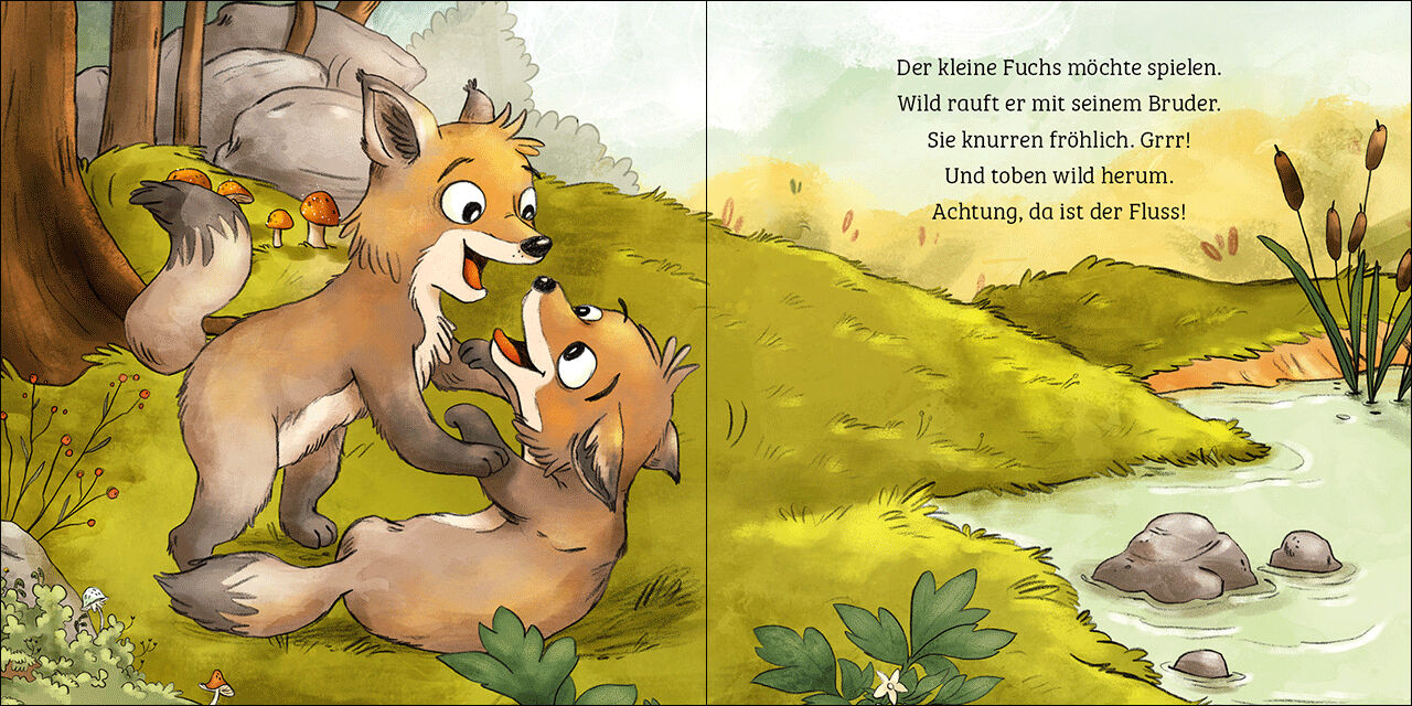 Komm mit in die Natur! Schau nur, die kleinen Füchse schlüpfen aus ihrem Bau! Ausgelassen tollen sie umher und erkunden ihre Umgebung. Zwischendurch gibt es einen kleinen Happen zur Stärkung. Wollen wir sie ein bisschen bei ihren Spielen beobachten? Aber ganz ...