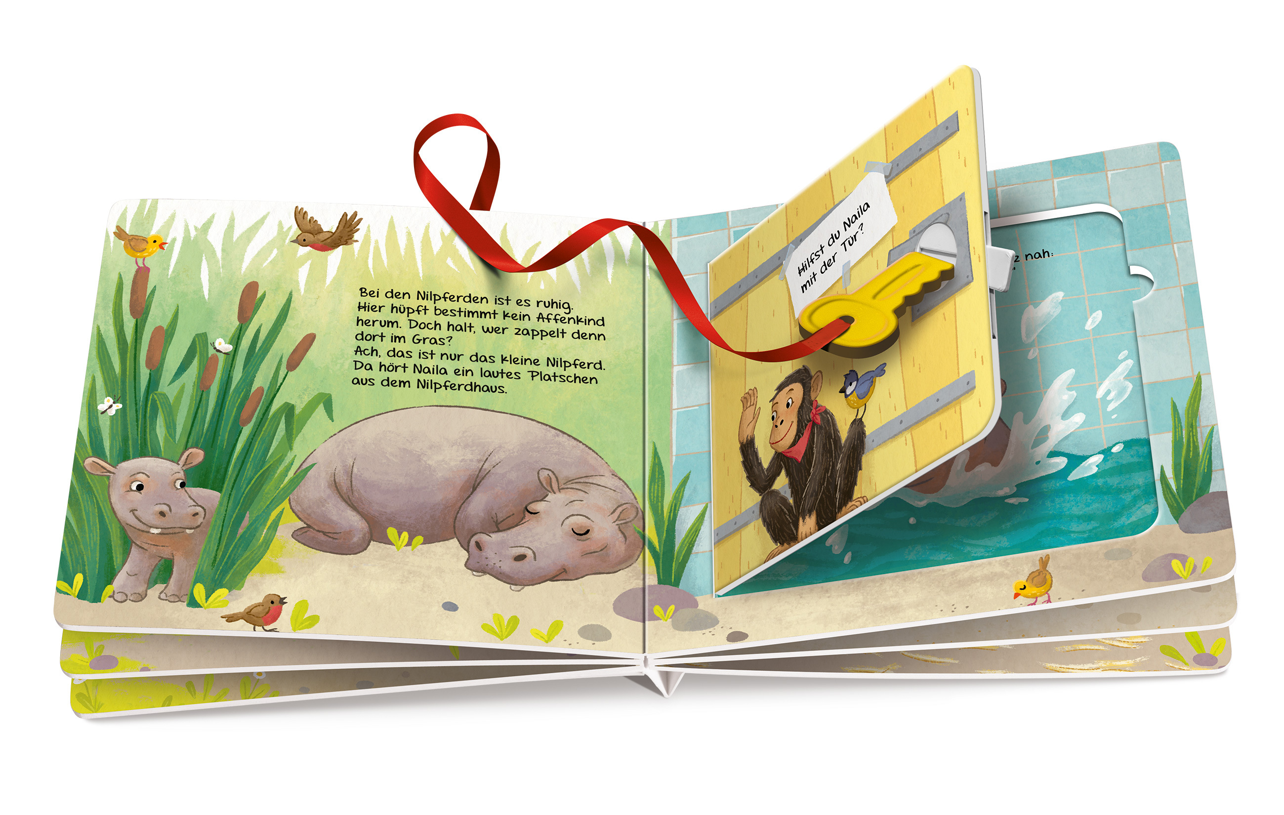 In "Mein erstes Schlüsselbuch. Wo ist das kleine Affenbaby?" begibt sich Affenmama Naila auf eine aufregende Suche nach ihrem verschwundenen Affenkind Kiko im Zoo. Auf ihrer Suche öffnet sie mit Hilfe der kleinen Leserinnen und Leser und einem beiliegenden Sc...