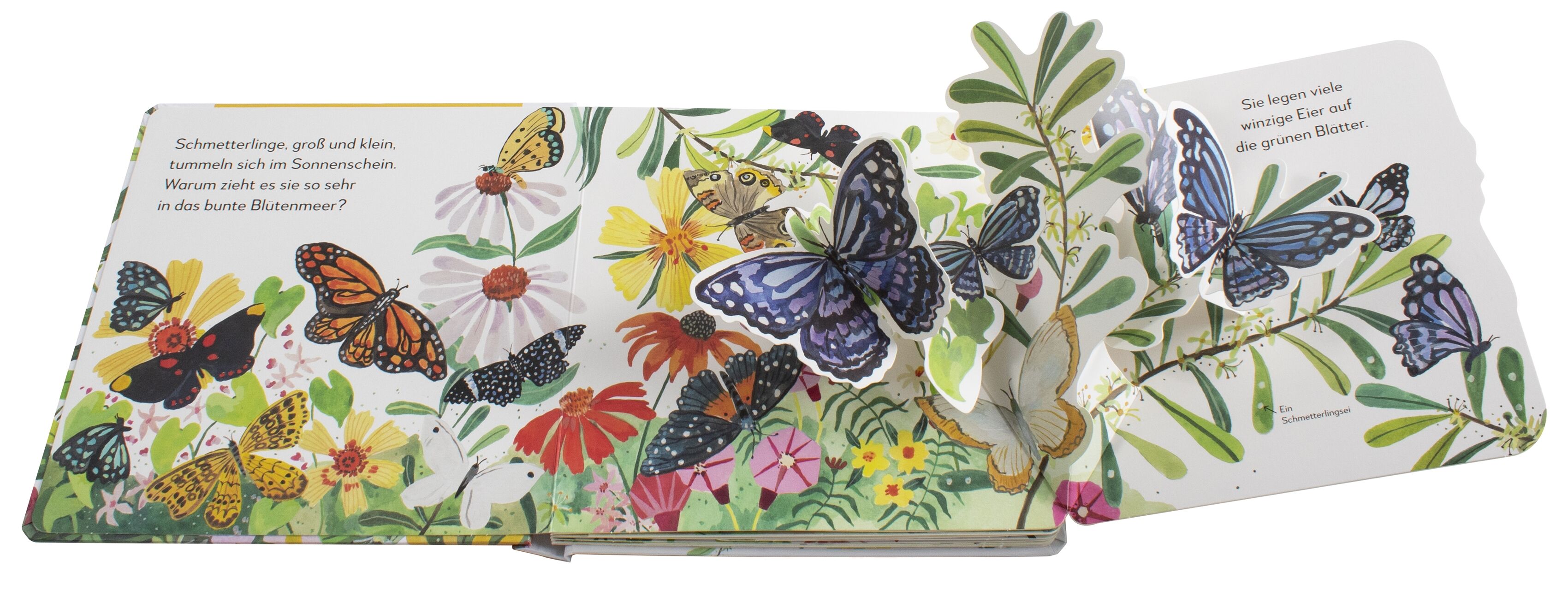 Natur zum Anfassen für die ganz Kleinen! Auf ganz wunderbare Weise regt dieses Kinderbuch ab 2 die Fantasie von Kleinkindern an: Das hochwertige Pappbilderbuch zeigt in 5 eindrucksvoll großen 3-D-Pop-ups die Verwandlung eines Schmetterlings vom Ei zur Raupe u...