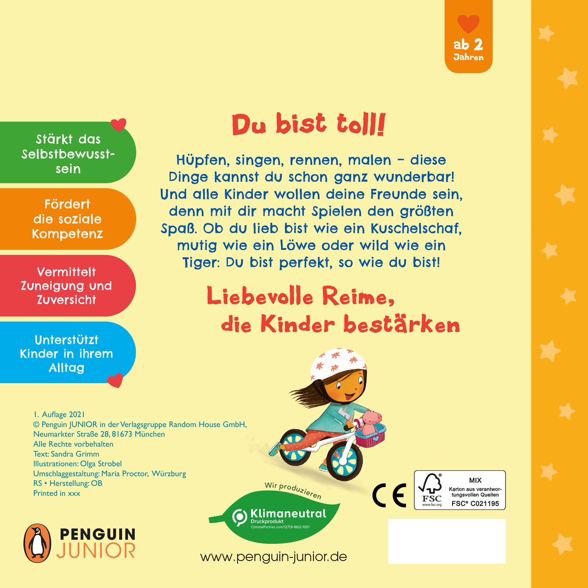 So werden Kinder mutig und selbstbewusst mit den Starkmacher-Büchern »Du bist toll, so wie du bist!«: Mit diesem Pappbilderbuch ist es ganz einfach, Kinder ab 2 Jahren in ihrer Entwicklung zu fördern und zu bestärken, denn die liebevollen und lustigen Reime ve...