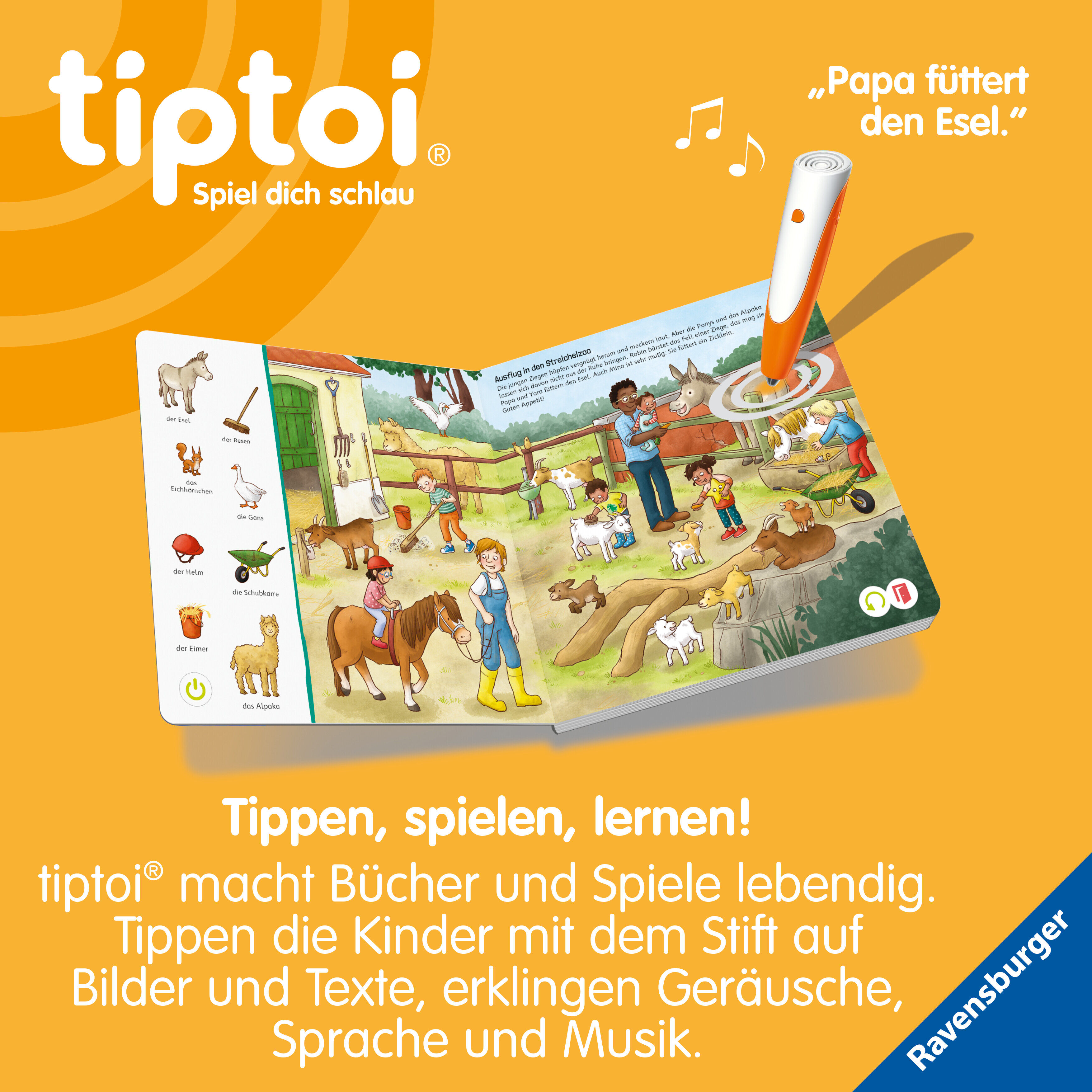 Auf der Suche nach einem Buch für Kinder mit Tiergeräuschen? Hier wiehert, muht und summt es! Auf dem Bauernhof bloken die Schafe, im Garten zwitschern die Vogel und auf der Wiese summt es in diesem Bilderbuch entdecken die Kleinen die heimische Tierwelt. Sieb...