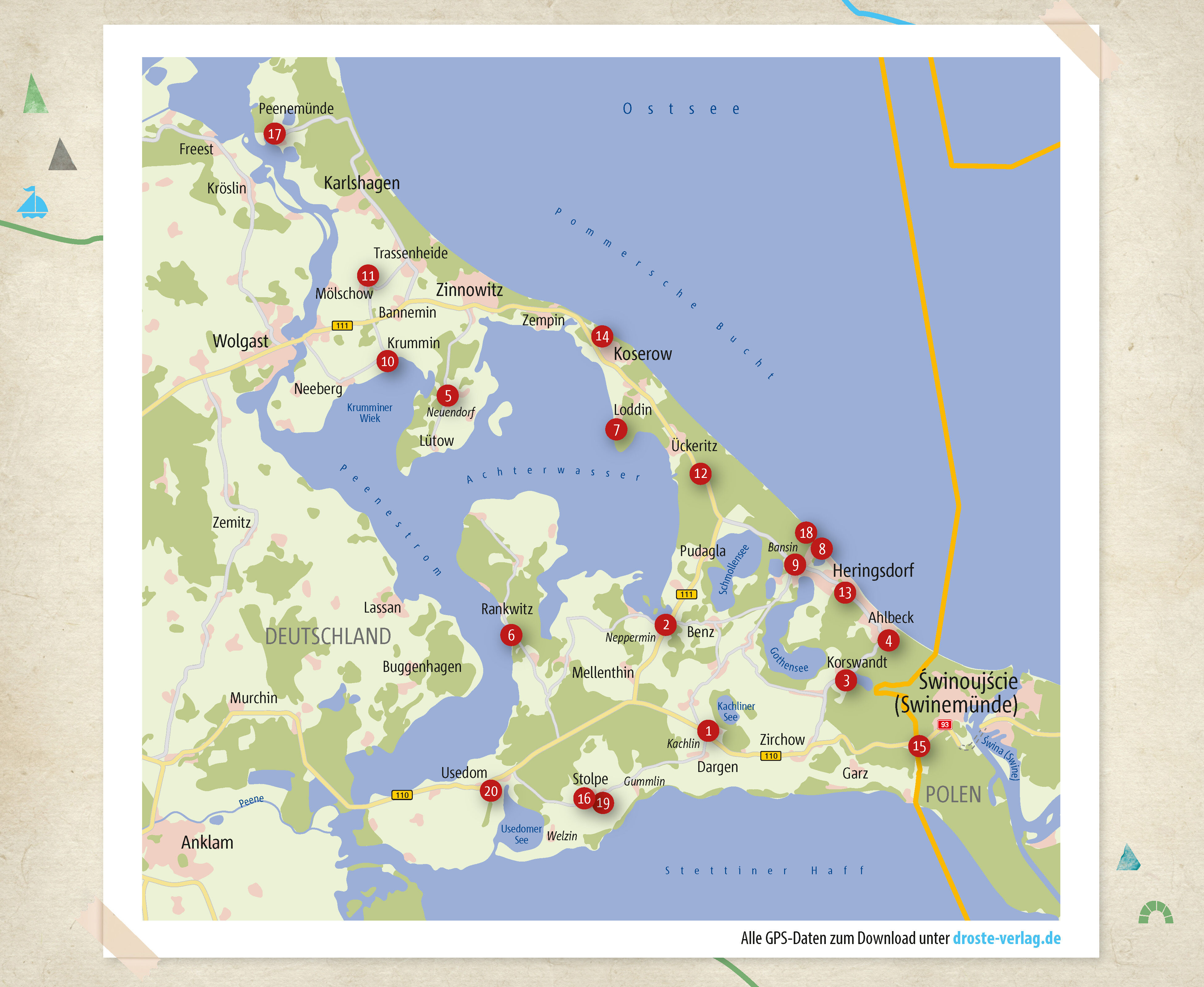 Diese Insel ist ein wahr gewordener Wandertraum! Entlang der Steilküste oder durch alte Buchenwälder, mit Blick über sieben Seen oder die schier endlose Ostsee: Wer auf Usedom mit Muße unterwegs ist, dem weiten sich Herz und Geist. Vom Teufelsstein geht es zum...