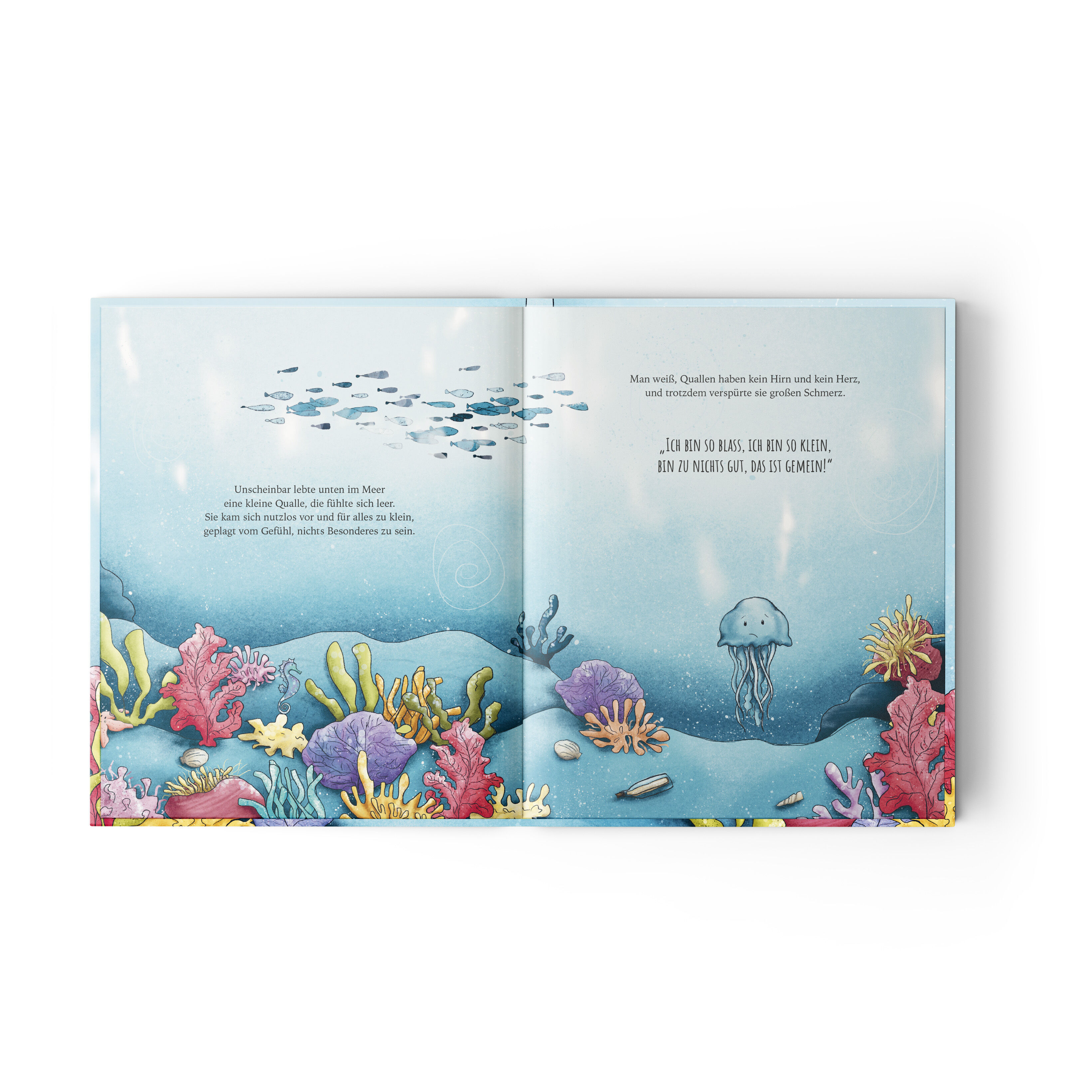 Unscheinbar lebt unten im Meer eine kleine Qualle, die fühlte sich leer. Sie kam sich nutzlos vor und für alles zu klein, geplagt vom Gefühl, nichts Besonderes zu sein. Eine amüsante und gleichzeitig tiefgründige Geschichte, die Kindern eine wichtige Botschaft...