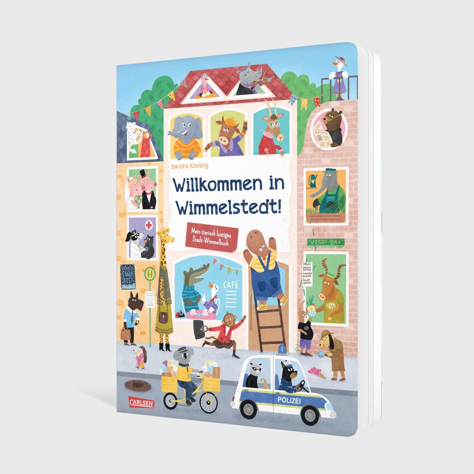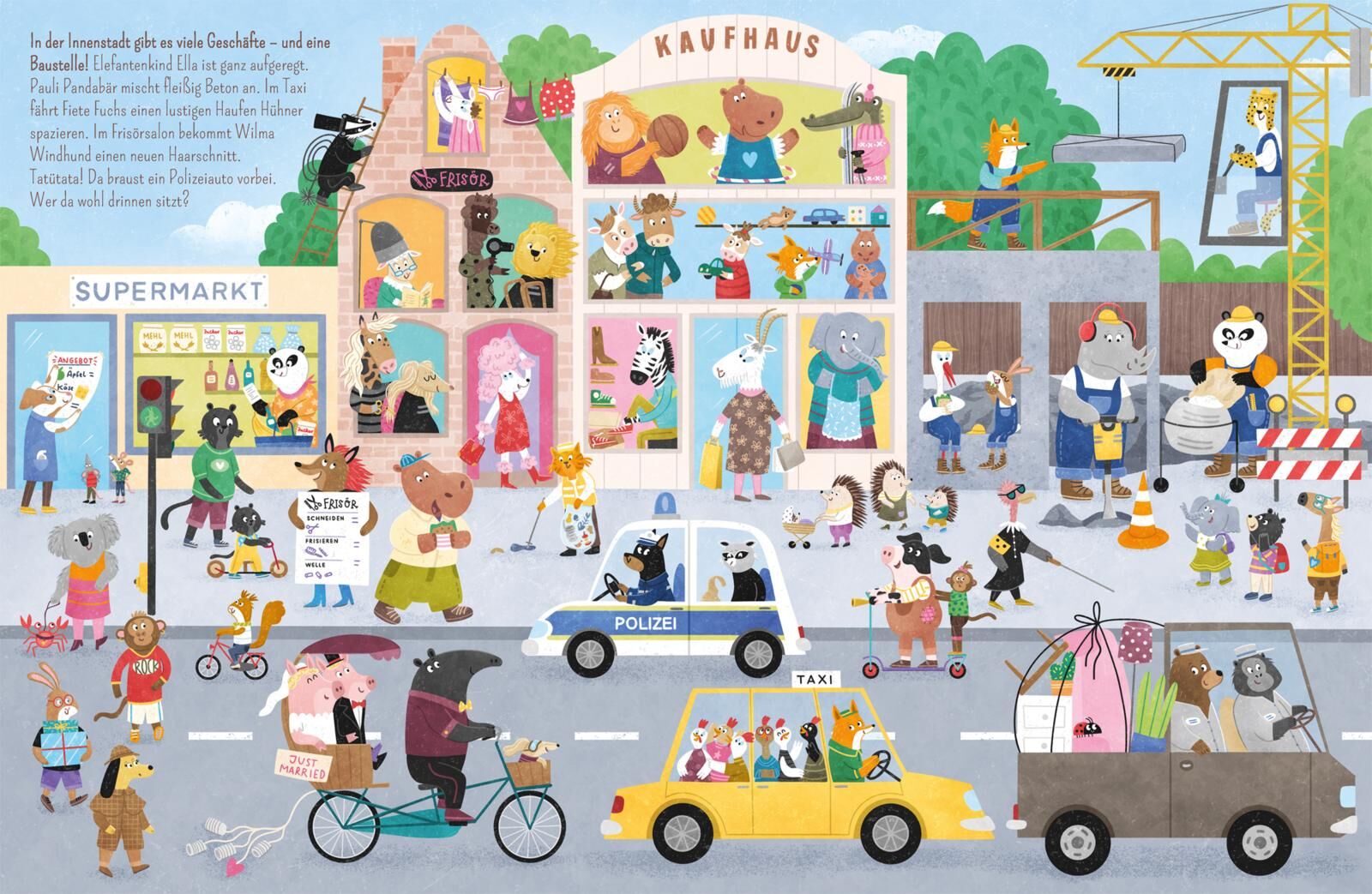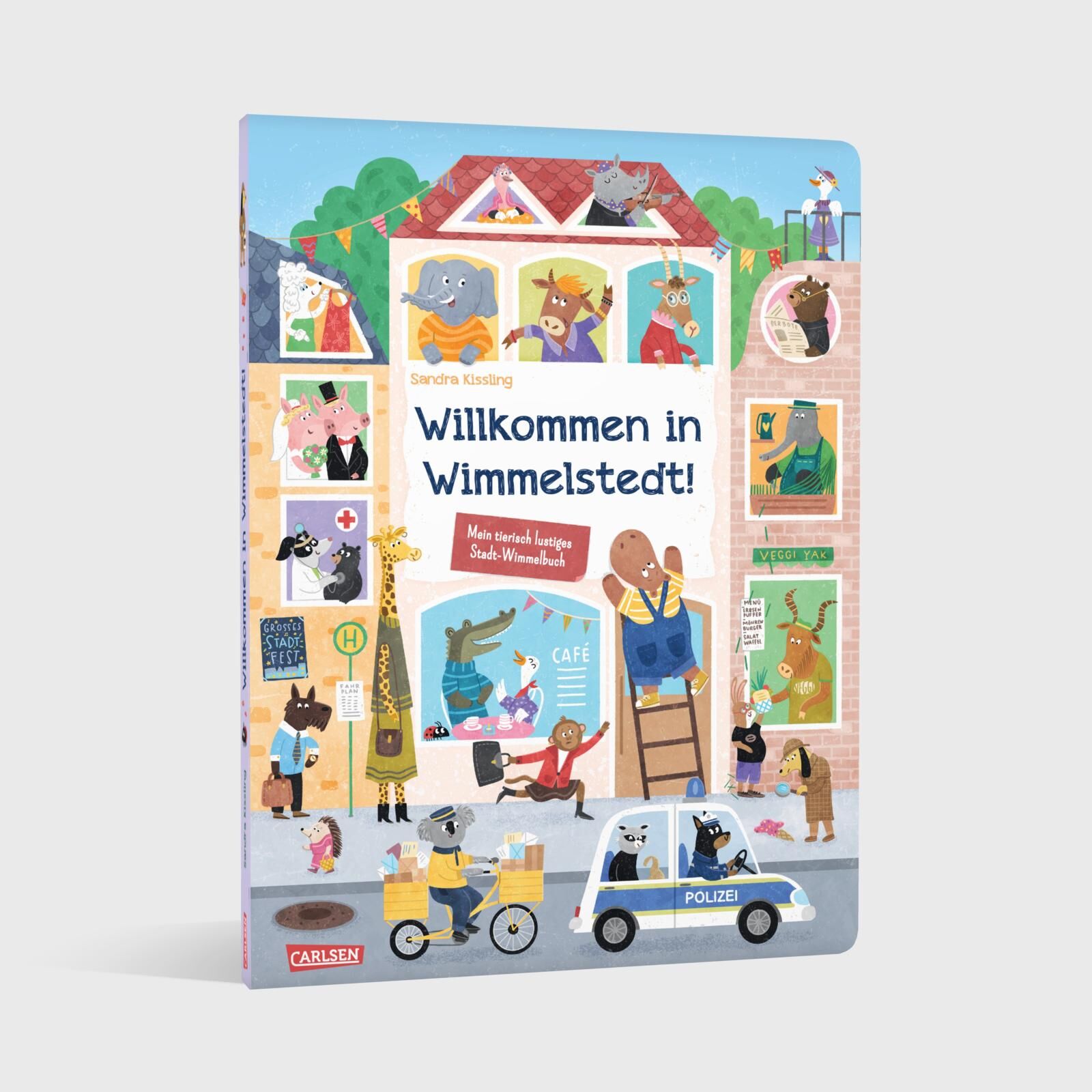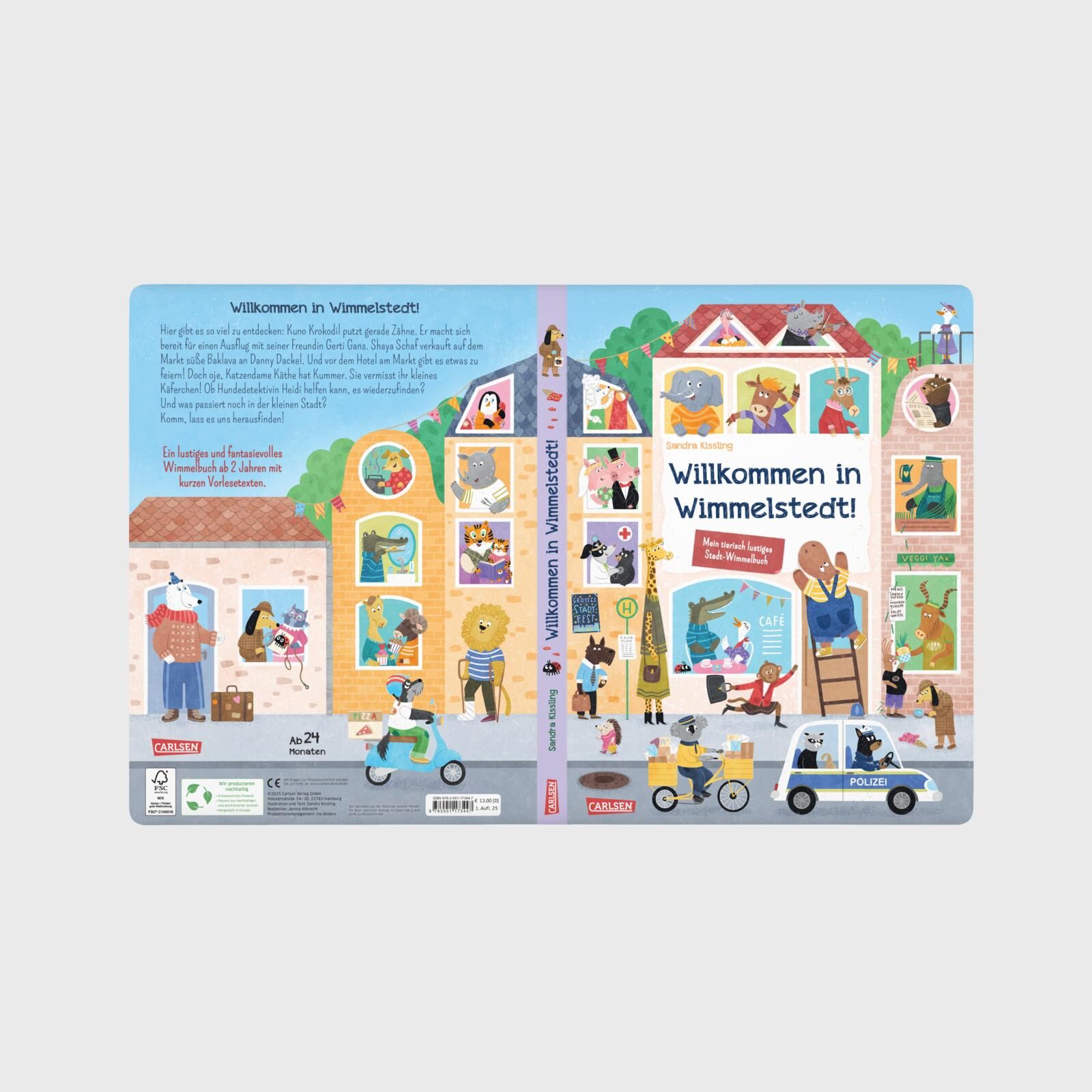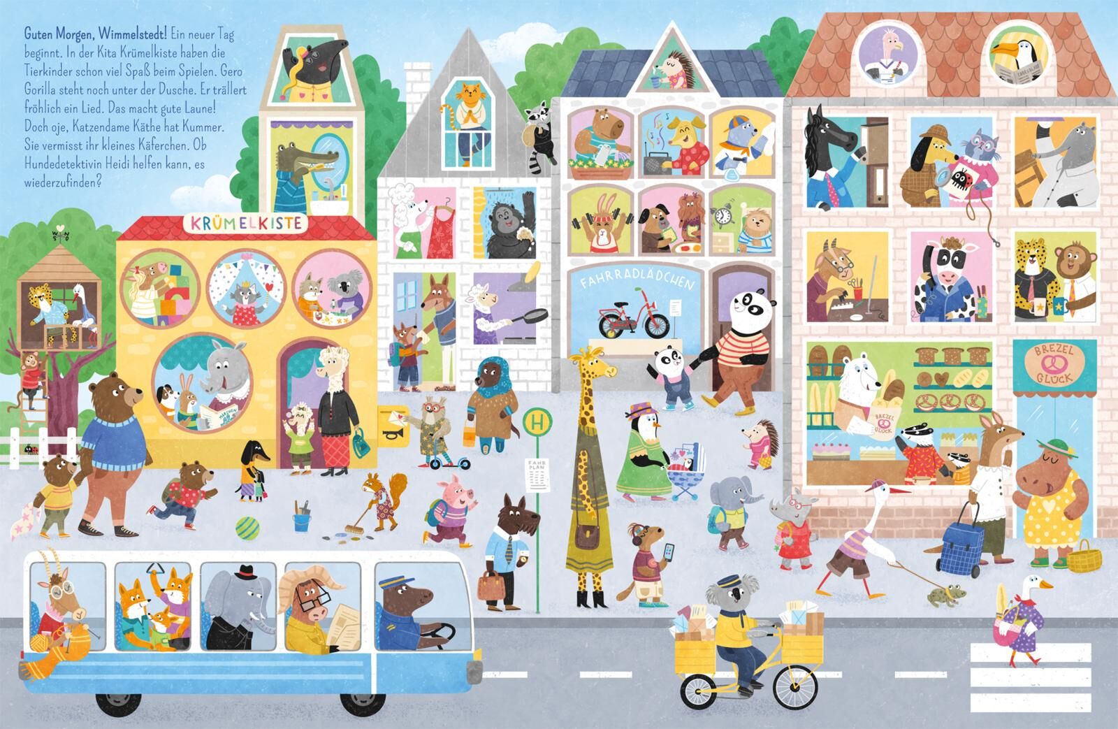 Tierisch viel los: Stadtwimmelbuch mit Tieren und kurzen Vorlesetexten Willkommen in Wimmelstedt, der fröhlichen Tierstadt voller Alltagsabenteuer! Hier gibt es auf jeder Seite neue Geschichten zu entdecken: Kuno Krokodil putzt fleißig Zähne, auf dem Marktpla...