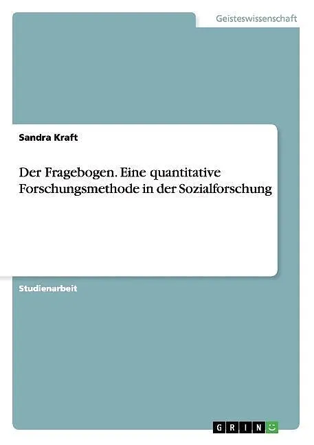 Studienarbeit aus dem Jahr 2015 im Fachbereich Soziale Arbeit / Sozialarbeit, Note: 1,0, Hochschule Fulda, Veranstaltung: Forschungsmethoden, Sprache: Deutsch, Abstract: In der quantitativen Sozialforschung wird oftmals ein Fragebogen zur Erhebung von Daten ve...