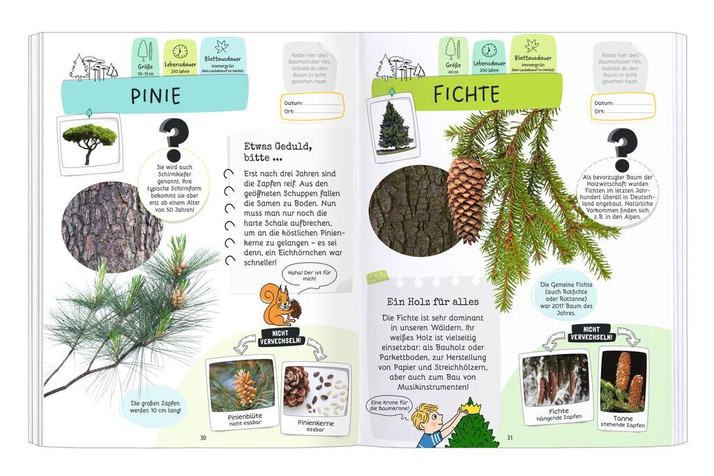 Mit diesem Baum-Mitmach- und Bestimmungsbuch können Kinder Bäume erkennen und zuordnen. Jede Seite zeigt einen Steckbrief mit wissenswerten Informationen. Zusätzlich bieten Rätsel, Ausmalbilder und bunte Sticker spaßige Abwechslung. + Naturführer und Rätselbuc...